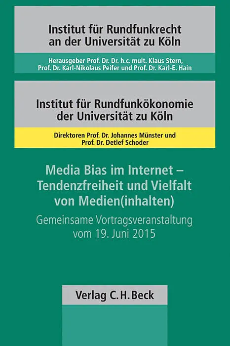 Der diesjährige Tagungsband ist eine Kooperation des Instituts für Rundfunkrecht an der Universität zu Köln mit dem Institut für Rundfunkökonomie der Universität zu Köln, das Thema ist demgemäß auch interdisziplinär.Media Bias bezeichnet Situationen subjektive...
