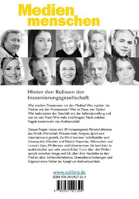 Hinter den Kulissen der Inszenierungsgesellschaft: 30 Prominente verraten in Interviews wie man Wirklichkeit inszeniert. Was machen Prominente mit den Medien? Was machen die Medien mit den Prominenten? Wer ist Täter, wer Opfer? Wie funktioniert das Geschäft mi...Hinter den Kulissen der Inszenierungsgesellschaft: 30 Prominente verraten in Interviews wie man Wirklichkeit inszeniert. Was machen Prominente mit den Medien? Was machen die Medien mit den Prominenten? Wer ist Täter, wer Opfer? Wie funktioniert das Geschäft mit der Selbstdarstellung, und was ist sein Preis? Wie wahr sind Images? Nach welchen Regeln konstruiert man Authentizität? Diesen Fragen haben sich 30 herausragende Persönlichkeiten aus Politik, Wirtschaft, Wissenschaft, Religion, Sport und Entertainment gestellt. Zu Wort kommen Schriftsteller und Schauspieler, Künstler und Klatsch-Reporter, Philosophen und Fernseh-Stars, PR-Berater und Unternehmer. Sie berichten in großer Offenheit über den Widerspruch zwischen Image und Ich, über ihre Hassliebe zu den Medien, über Schlüsselerlebnisse, Grenzüberschreitungen und folgenschwere Fehler im Kampf um Aufmerksamkeit. So erklärt der ehemalige Bundesaußenminister Joschka Fischer die Funktion des Regentanzes in der Politik. Das Fußball-Idol Günter Netzer spricht über seine Unsicherheit vor der Kamera. Das Gesamtkunstwerk Verona Pooth gibt erstmals zu, intelligent zu sein. Der Lobbyist Hans Olaf-Henkel erzählt, wie er die Bundeskanzlerin Angela Merkel mit Hilfe der Bildzeitung beeinflusst hat. Die Leistungssportlerin Franziska von Almsick berichtet darüber, wie sie vor Gericht um ihr Privatleben und gegen die Paparazzi kämpft; der Moderator Michel Friedman nimmt zu dem Skandal um Kokain und Zwangsprostitution Stellung; die Boxweltmeisterin Regina Halmich erklärt Dynamik und Dramatik der öffentlich inszenierten Schaukämpfe. Und der Steuer-Experte Paul Kirchhof erläutert, wie Politiker die Medien benutzen, um Gegner und Konkurrenten zu diffamieren. Die Gespräche lassen sich als subjektive Medientheorien von Eingeweihten lesen. Sie vermitteln in anekdotischer und sehr persönlicher Form überraschende, unterhaltsame und zum Teil erschreckende Einsichten in die Inszenierungsgesellschaft, zu der wir alle gehören.