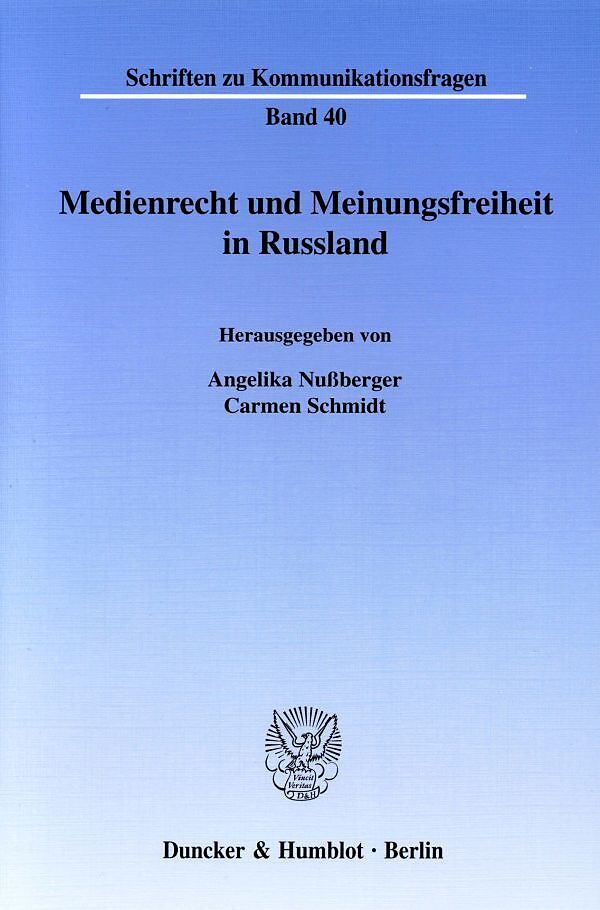 Die moderne Mediengesellschaft macht vor Staatsgrenzen keinen Halt, auch wenn es sich um so unterschiedliche politische Systeme wie gegenwärtig in Russland, Weißrussland und in den EU-Mitgliedsstaaten handelt. Eine besondere Brisanz im Medienbereich hat in den...