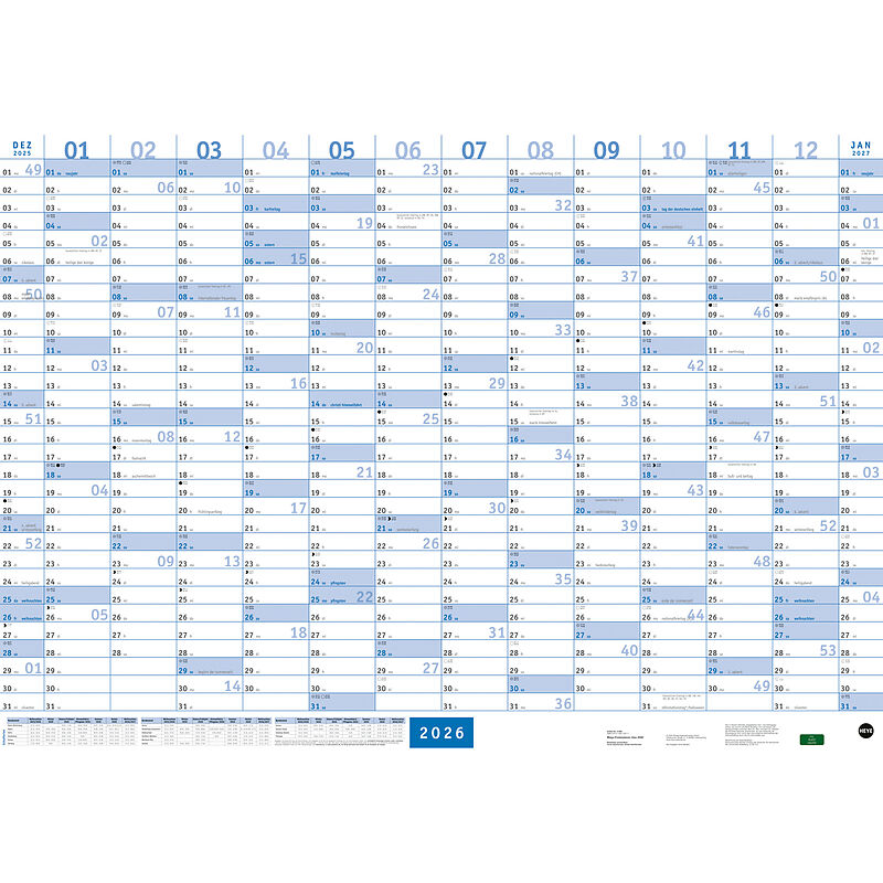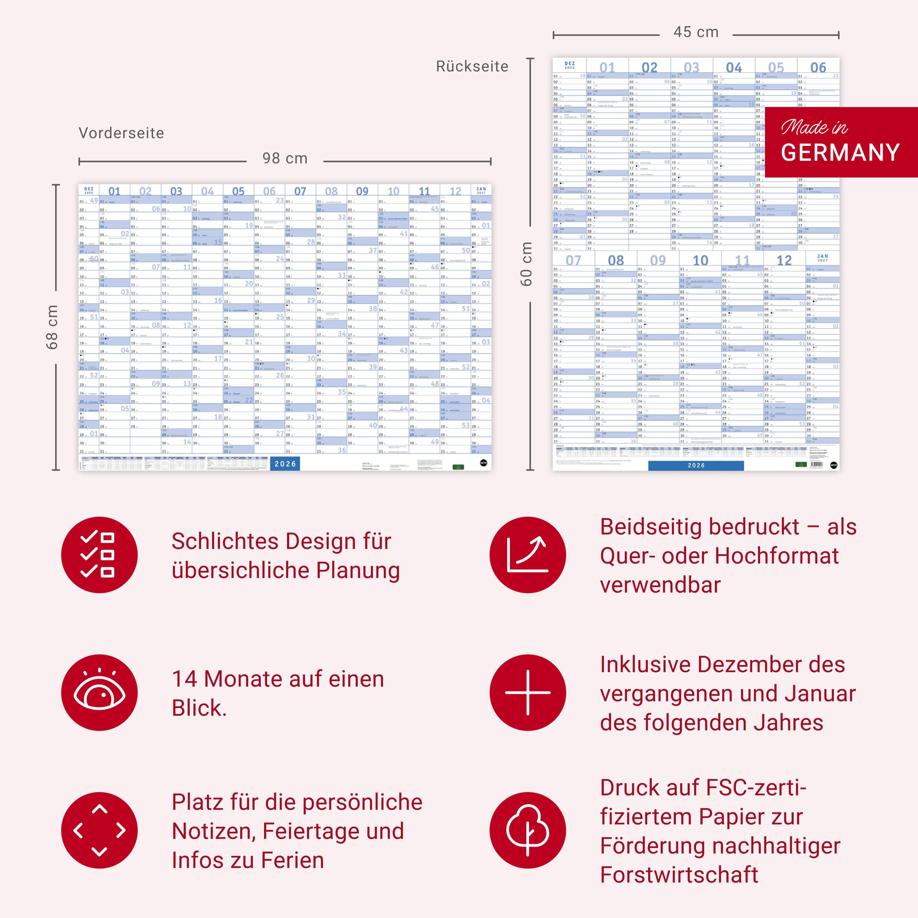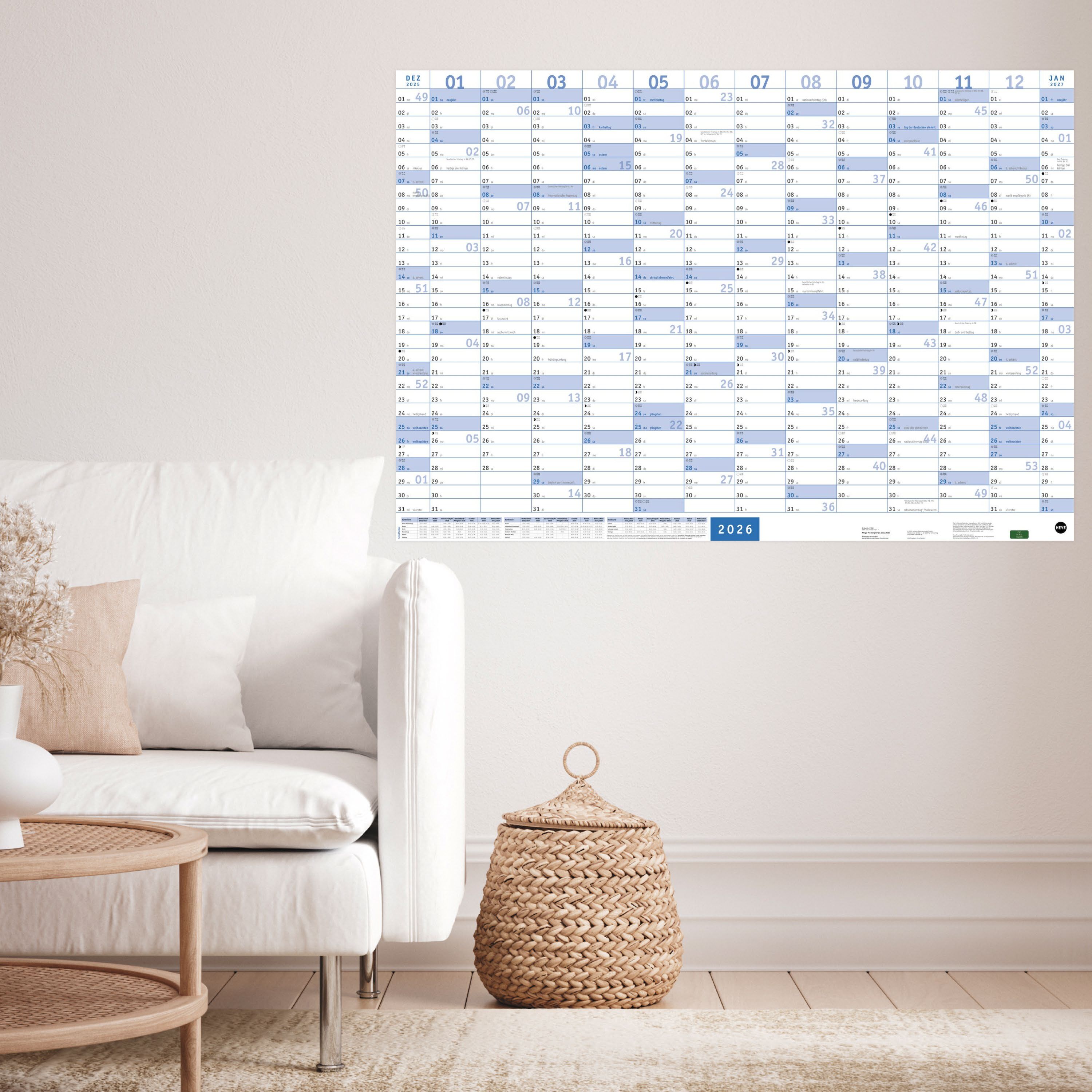 Der XL-Organizer für die Wand im schlichten und minimalistischen Design: unser Poster-Jahresplaner 2026 in Blau - Das ganze Jahr im Überblick auf großzügigen 68 x 98 cm: Wandplaner zum Aufhängen mit extra viel Platz für Termine und weitere Eintragungen - Max...
