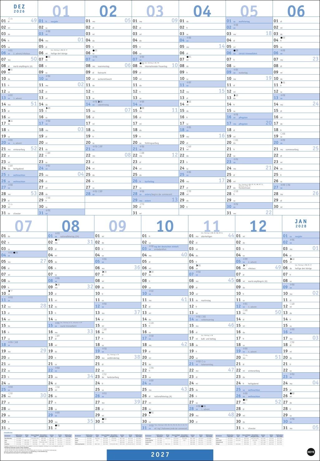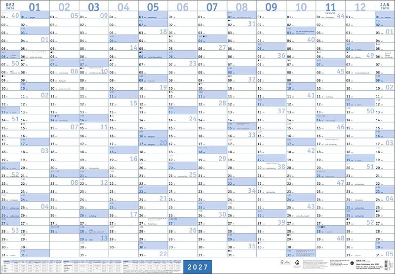 Der XL-Organizer für die Wand im schlichten und minimalistischen Design: unser Poster-Jahresplaner 2027 in Blau - Das ganze Jahr im Überblick auf großzügigen 68 x 98 cm: Wandplaner zum Aufhängen mit extra viel Platz für Termine und weitere Eintragungen - Max...