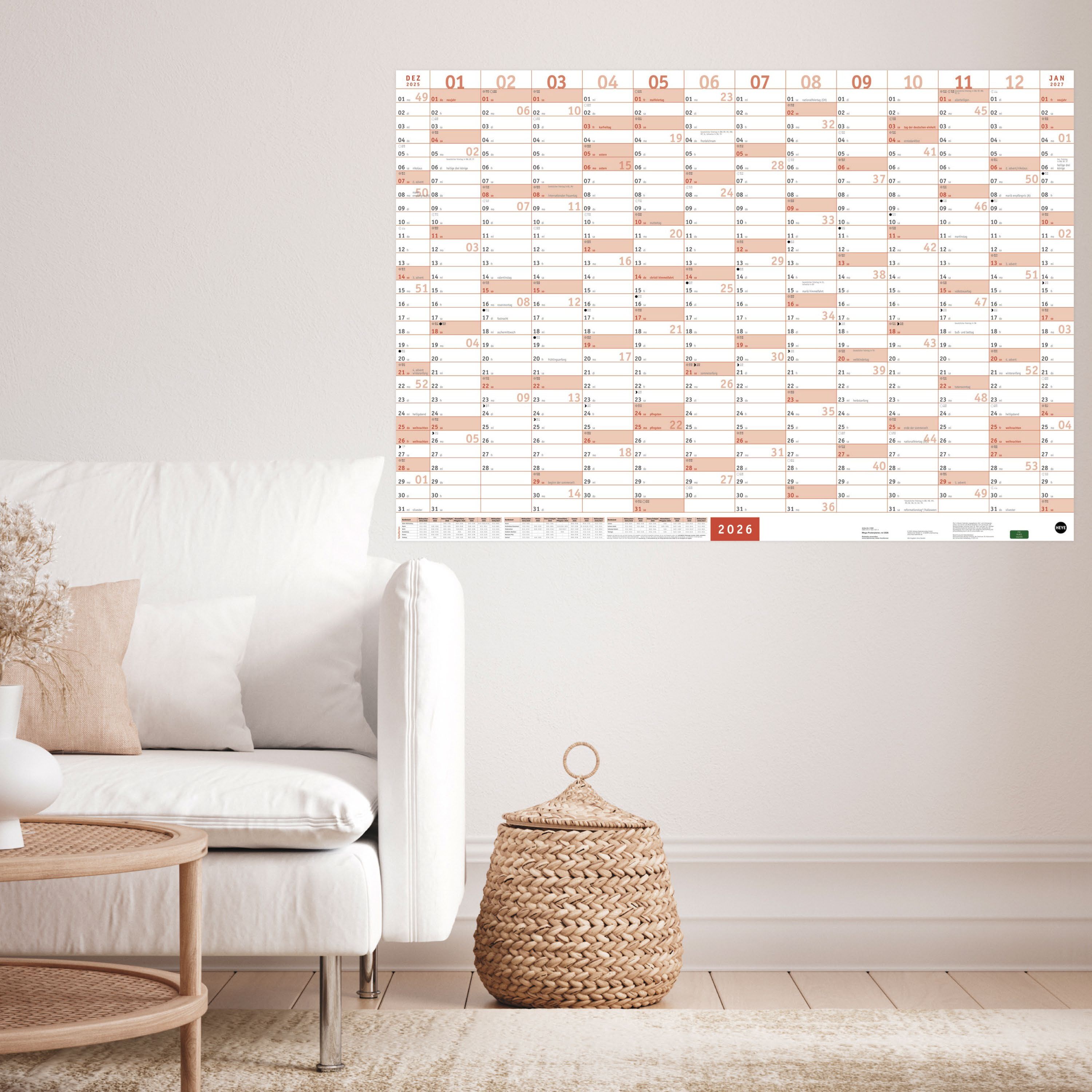 Der XL-Organizer für die Wand im schlichten und minimalistischen Design: unser Poster-Jahresplaner 2026 in Rot - Das ganze Jahr im Überblick auf großzügigen 68 x 98 cm: Wandplaner zum Aufhängen mit extra viel Platz für Termine und weitere Eintragungen - Maxi...