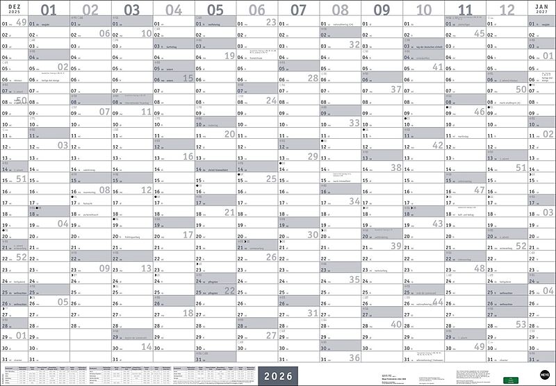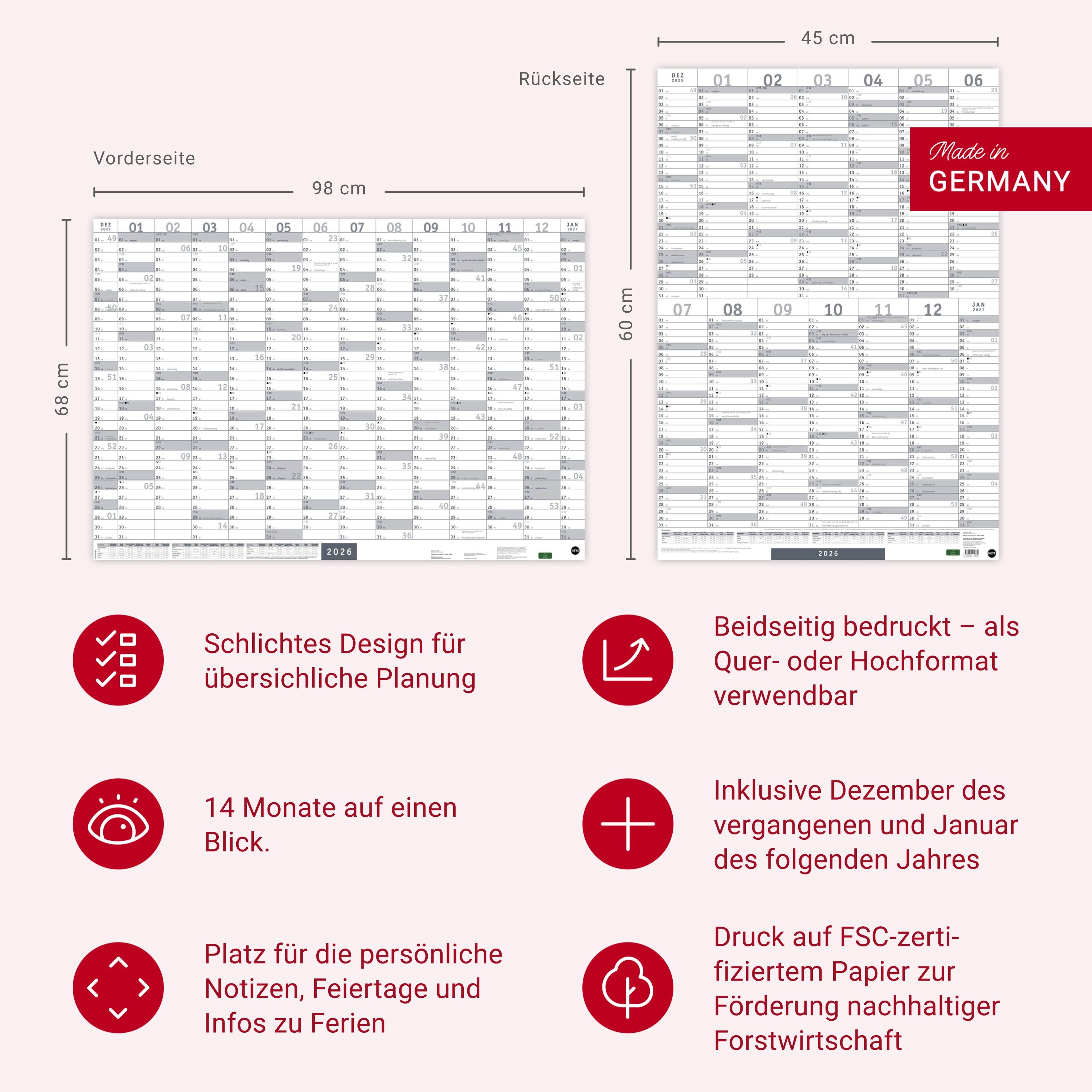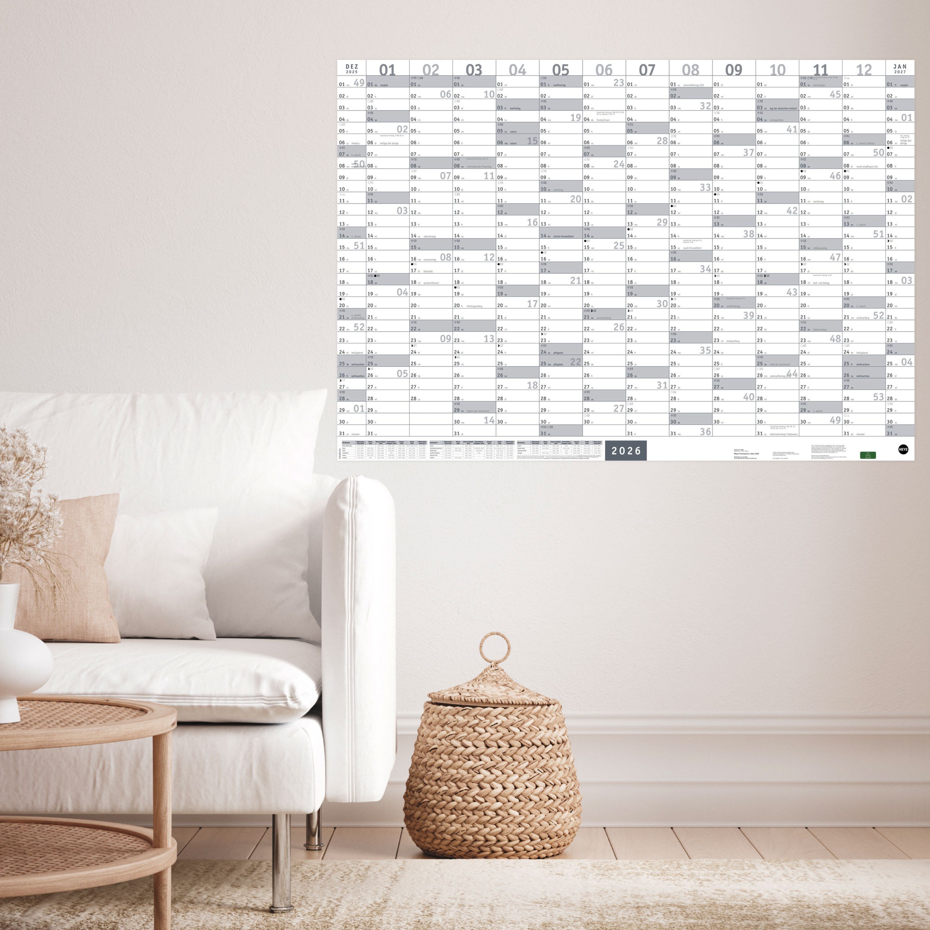 Der XL-Organizer für die Wand im schlichten und minimalistischen Design: unser Poster-Jahresplaner 2026 in Silber - Das ganze Jahr im Überblick auf großzügigen 68 x 98 cm: Wandplaner zum Aufhängen mit extra viel Platz für Termine und weitere Eintragungen - M...