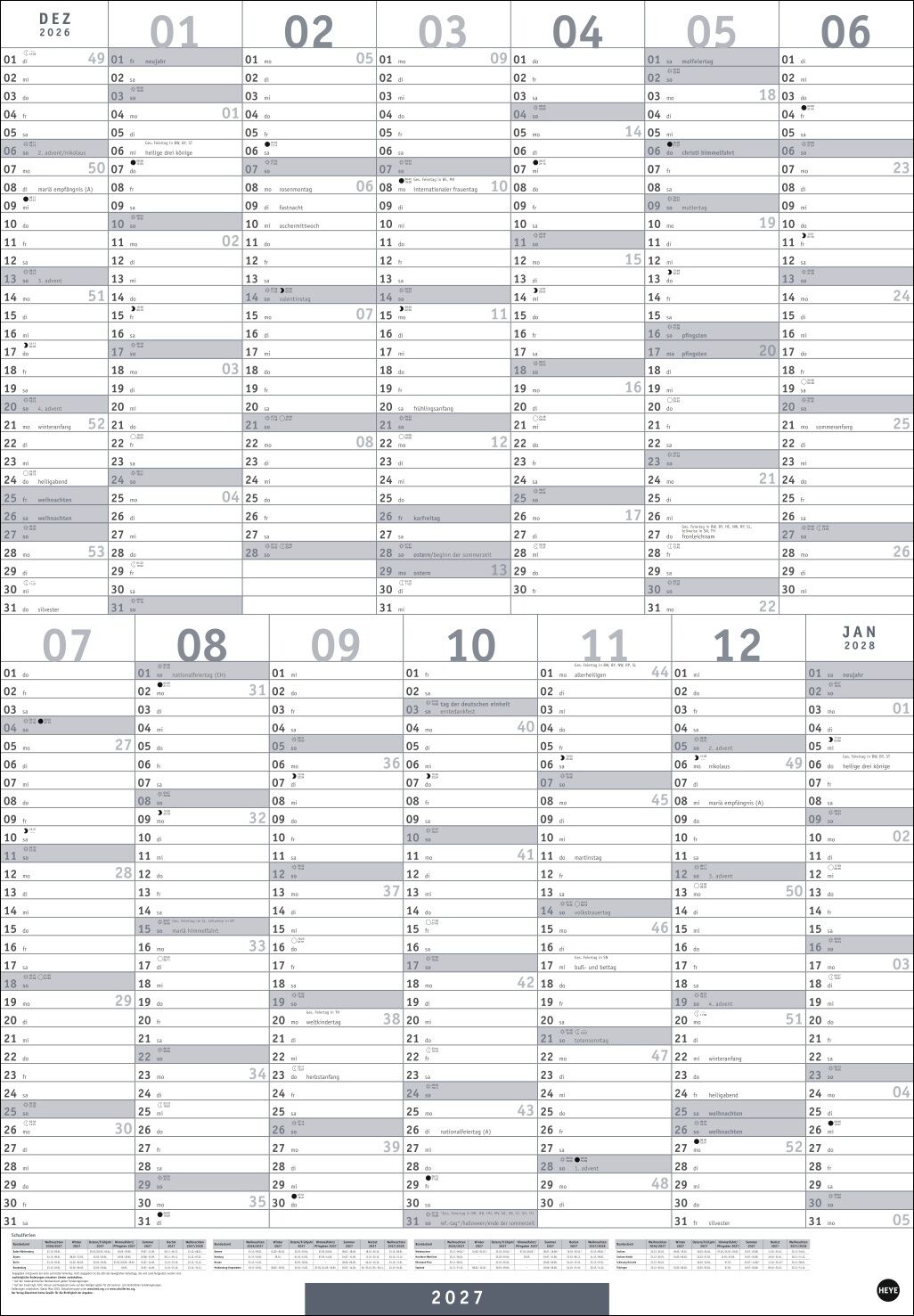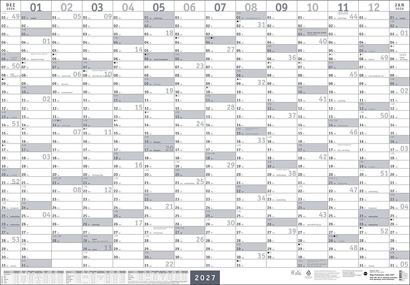 Der XL-Organizer für die Wand im schlichten und minimalistischen Design: unser Poster-Jahresplaner 2027 in Silber - Das ganze Jahr im Überblick auf großzügigen 68 x 98 cm: Wandplaner zum Aufhängen mit extra viel Platz für Termine und weitere Eintragungen - M...