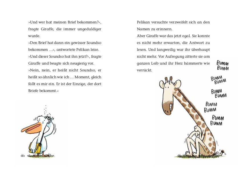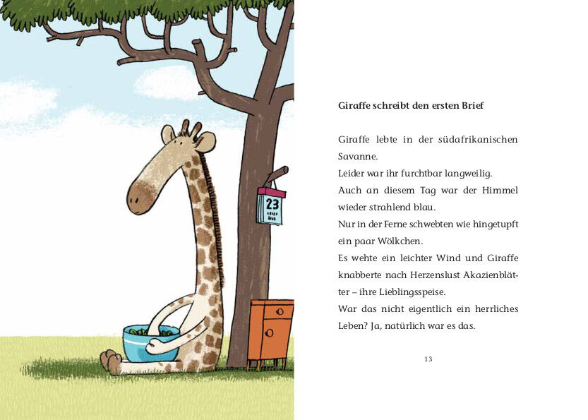 Giraffe wohnt in der afrikanischen Savanne. Ihre Tage verlaufen eintönig und sie sehnt sich nach einem Freund. Also beschließt sie, einen Brief zu schreiben: »Du sollst ihn dem ersten Tier übergeben, das dir hinter dem Horizont begegnet«, sagt sie zu Pelikan, ...