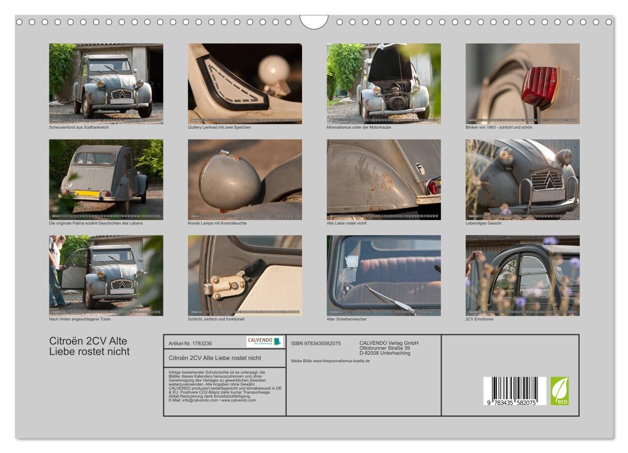 Citroën 2CV Alte Liebe rostet nicht (Wandkalender 2025 DIN A3 quer), CALVENDO Monatskalender