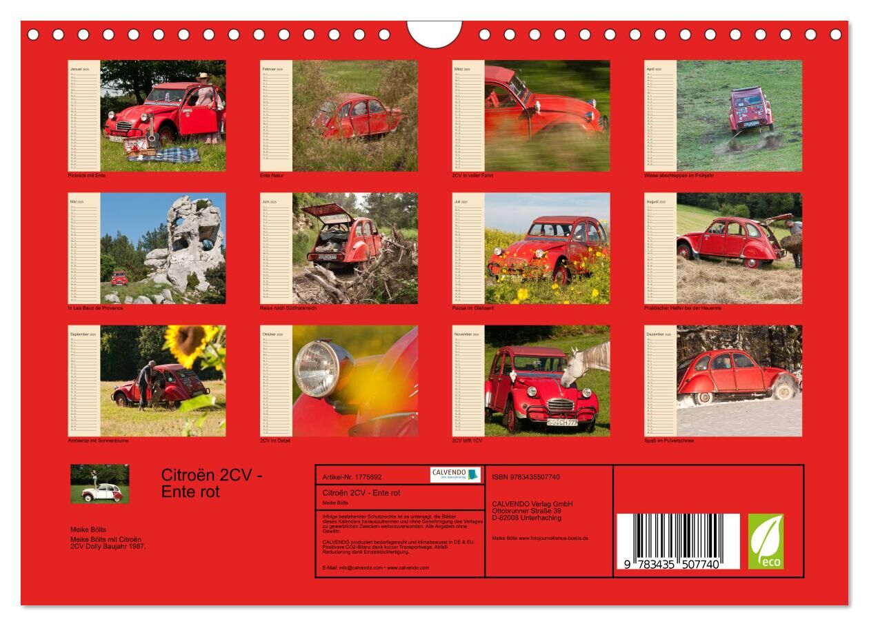 Citroën 2CV - Ente rot (Wandkalender 2025 DIN A4 quer), CALVENDO Monatskalender