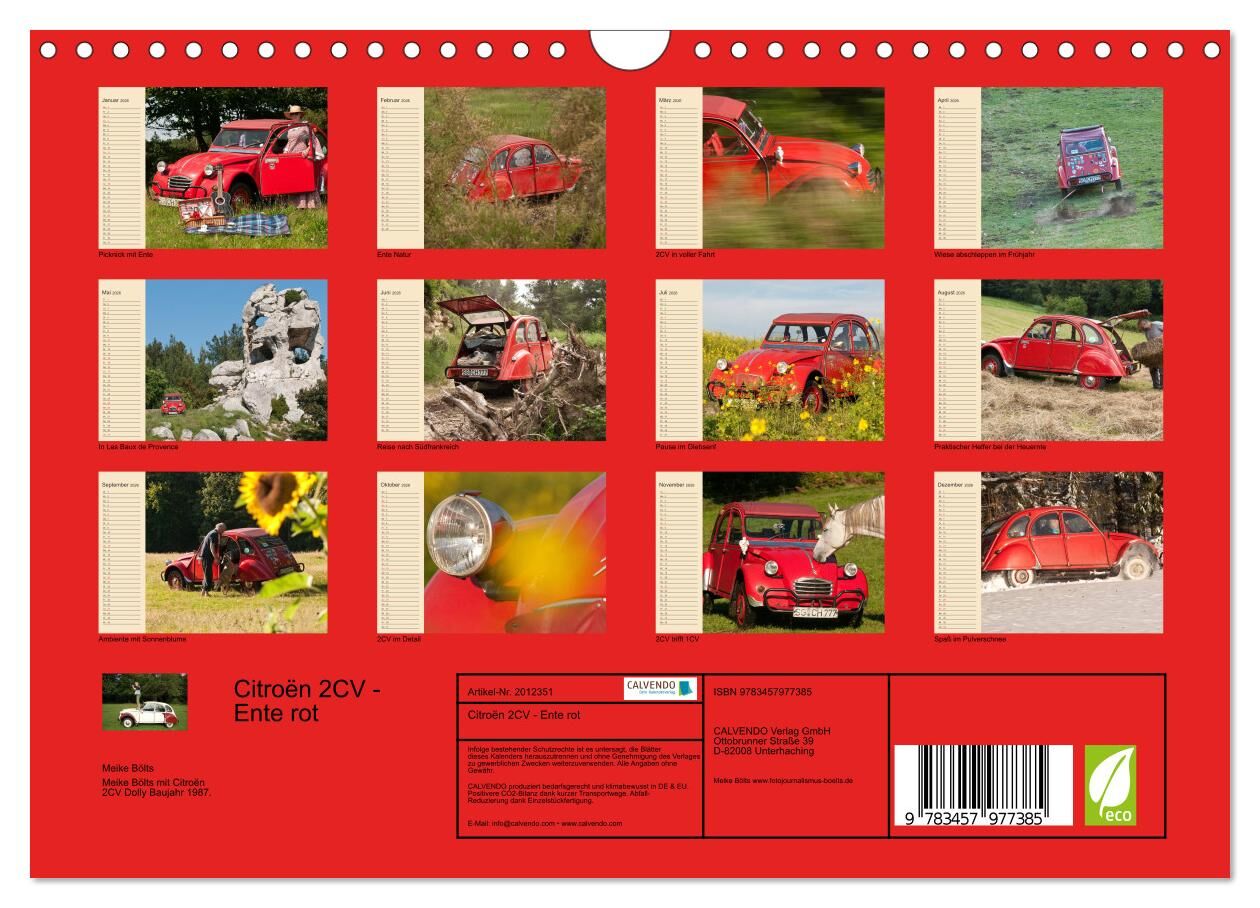 Citroën 2CV - Ente rot (Wandkalender 2026 DIN A4 quer), CALVENDO Monatskalender