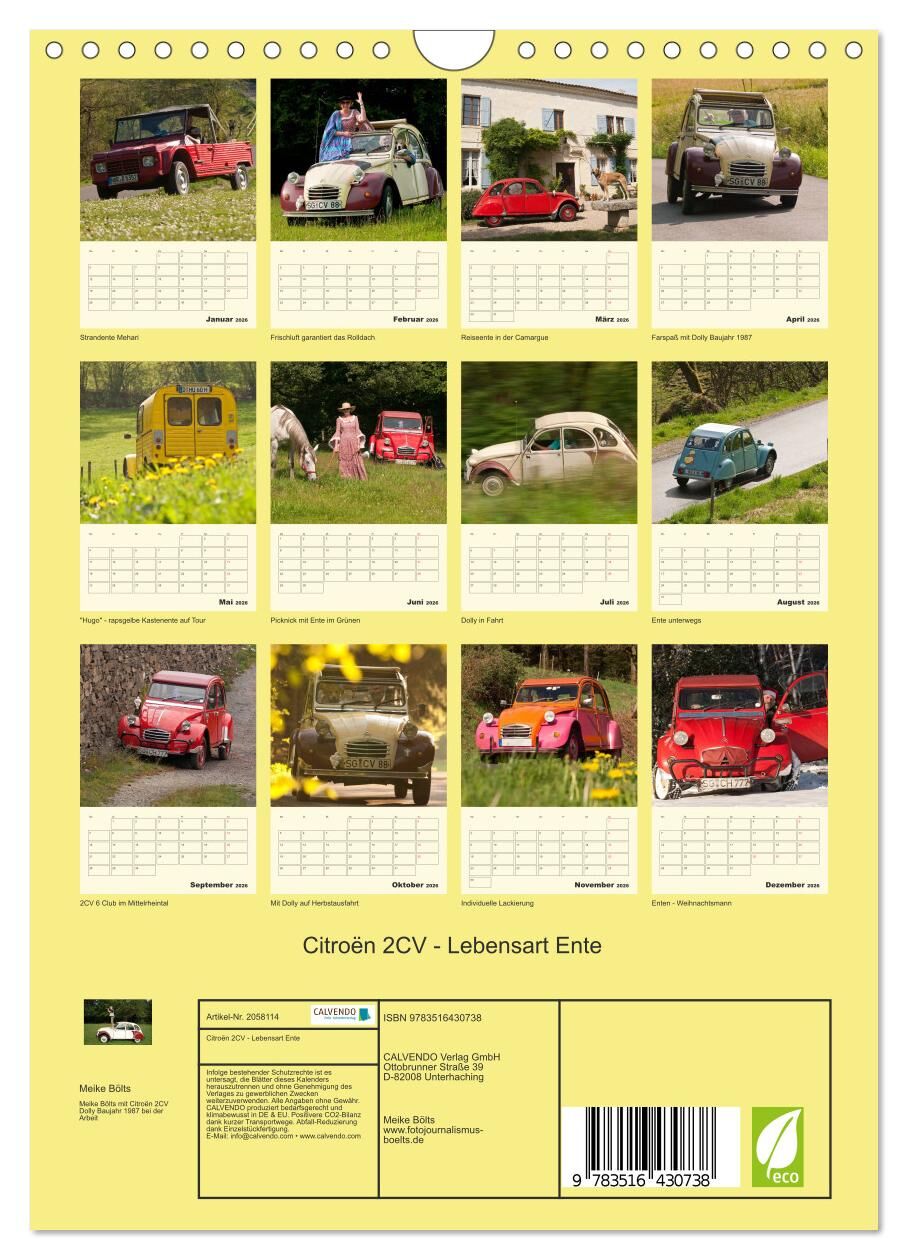 Citroën 2CV - Lebensart Ente (Wandkalender 2026 DIN A4 hoch), CALVENDO Monatskalender