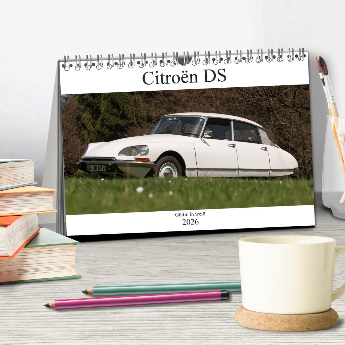 Citroën DS - Göttin in weiß (Tischkalender 2026 DIN A5 quer), CALVENDO Monatskalender