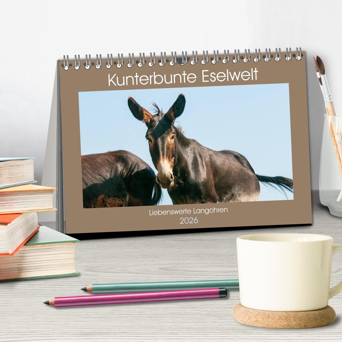 Kunterbunte Eselwelt - Liebenswerte Langohren (Tischkalender 2026 DIN A5 quer), CALVENDO Monatskalender