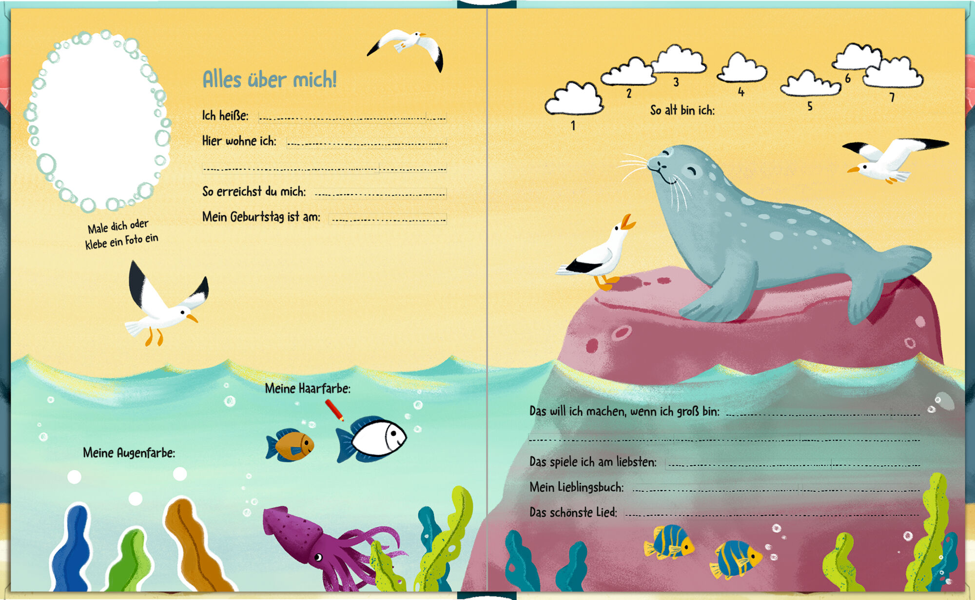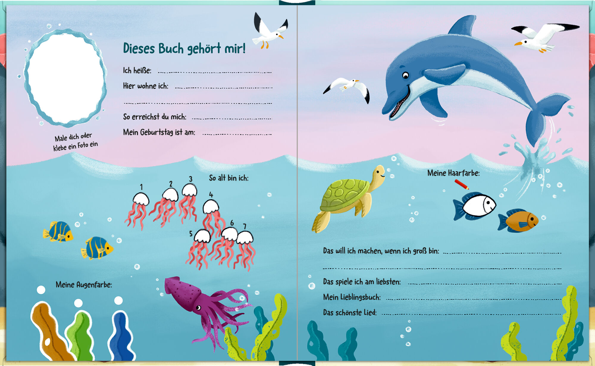 Freundebuch Meerestiere für Kindergarten, Kita und Grundschule Mit funkelndem Wendepailletten-Patch auf dem Cover Spielerische Illustrationen von Delfin, Wal und Schildkröte Kreative Eintragseiten für 20 Freunde Das Freundebuch Meerestiere lädt Kinder ein, in...