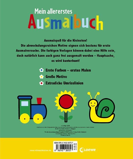 Fördert die Kreativität + Motiviert zum Mitmachen, Beschäftigen und Entspannen + Fördert die Feinmotorik + Wunderschöne Motive zum Ausmalen + Ausmalspaß für die Kleinsten! Die abwechslungsreichen Motive eignen sich bestens für erste Ausmalversuche. Die farb...