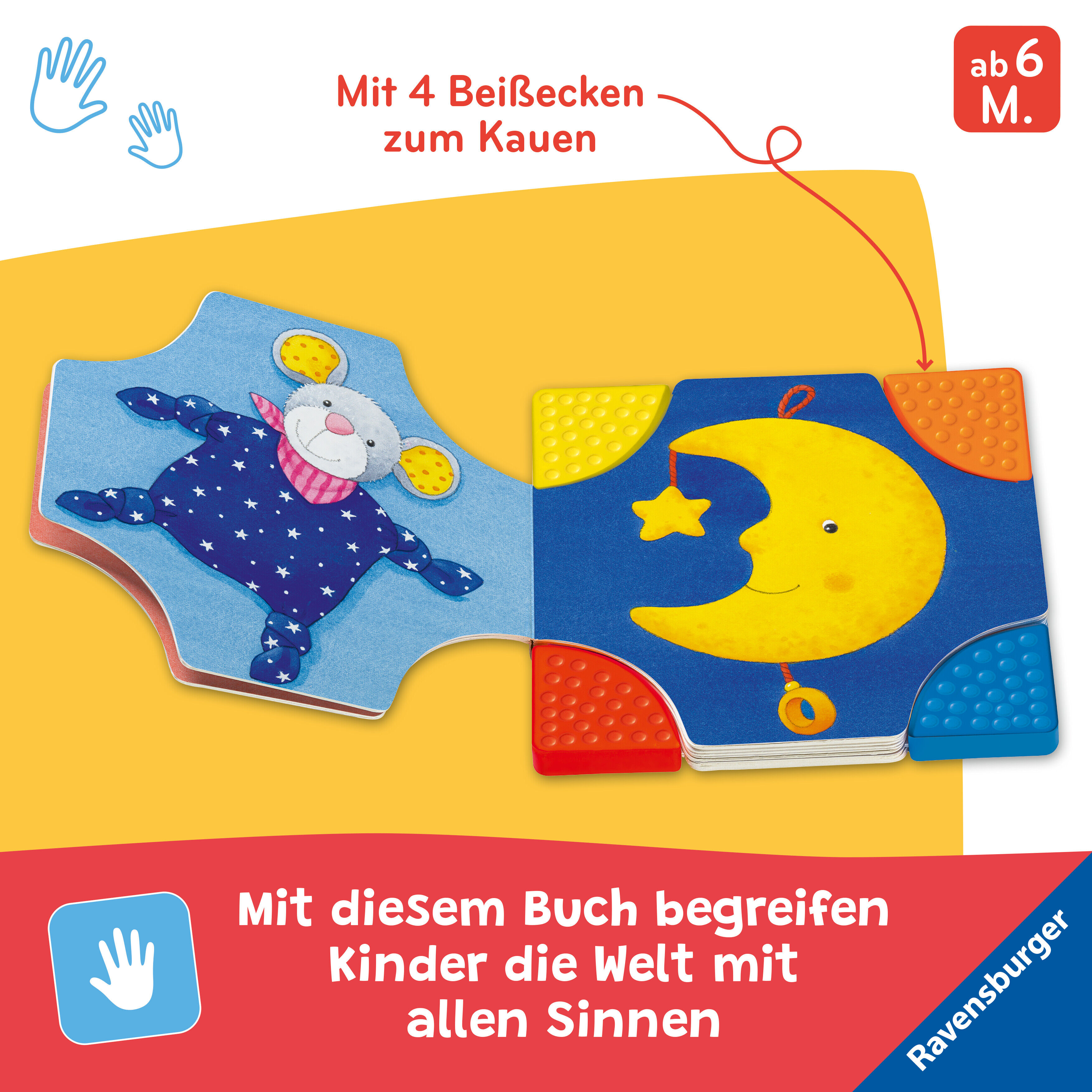 1, 2, 3 und losgeknabbert! Dieses Buch haben Babys zum Fressen gern! Denn vier farbenfrohe Beißecken wecken die Entdeckerlust von Kindern ab 6 Monaten. In diesem Alter wird gern alles in den Mund genommen. Deshalb sind die genoppten Kunststoffecken beim Knabbe...