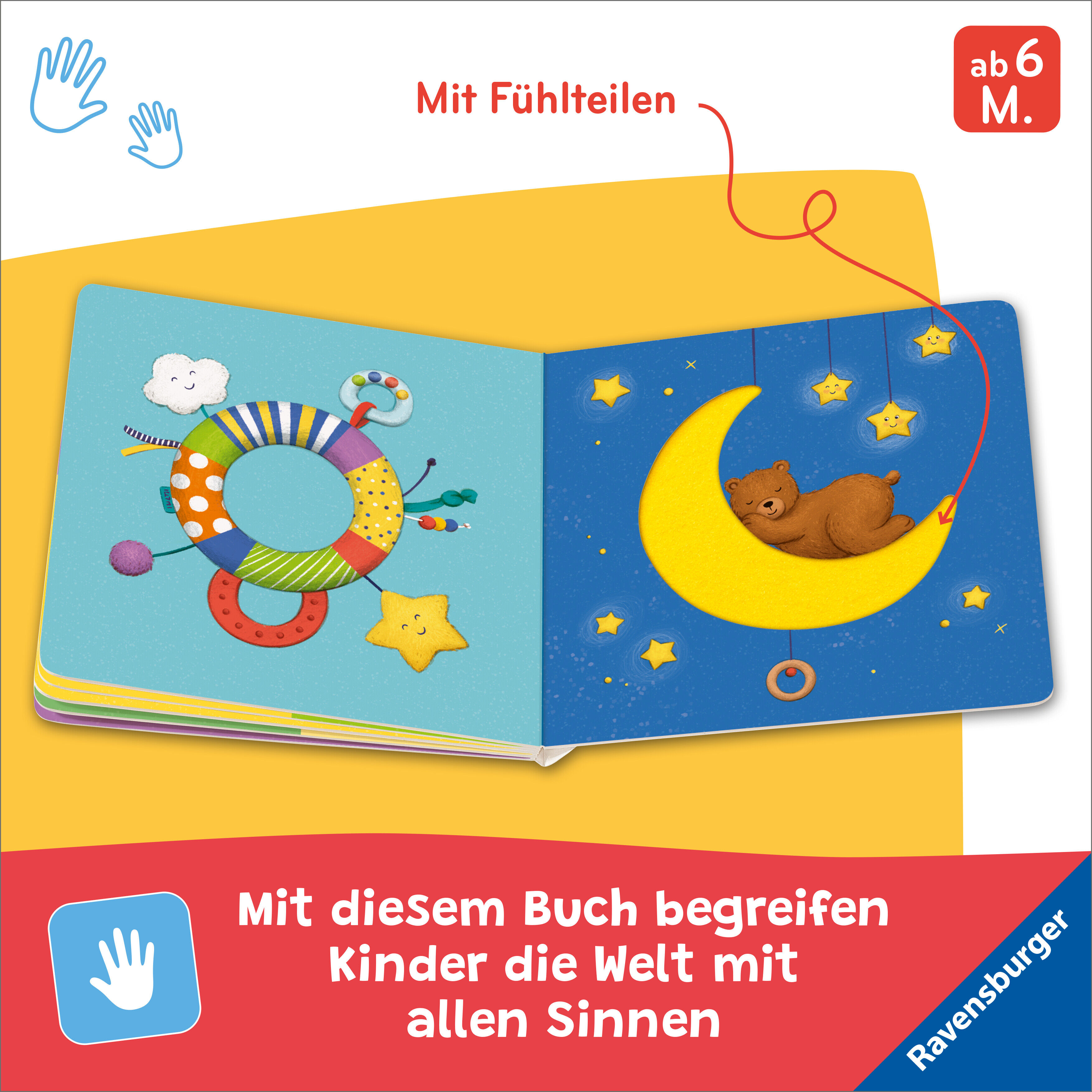 Allererstes Fühlen für Kleinkinder ab 6 Monaten Ein wolliges Schäfchen, ein flauschiger Fuchs und eine samtige Spieluhr in diesem Fühlbuch rund um das Thema Gute Nacht gibt es für die Allerkleinsten viel zu entdecken. Abwechslungsreiche Fühlelemente und vertra...