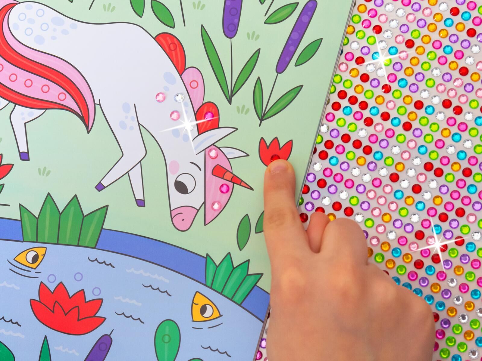 Bereit für ein Reise in den Einhornwald? Mit über 900 glänzenden Glitzersteinen kannst du die zauberhaften Szenen zum Glänzen bringen. Ob Einhorn oder Pegasus, ob Schmetterling oder Blume, bei diesem wunderbaren Stickerspaß mit Glitzer-Effekt ist für jeden wa...