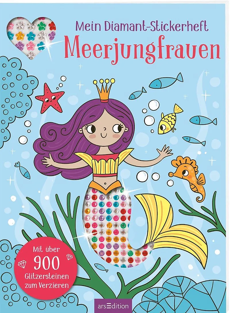 Mein Diamant-Stickerheft - Meerjungfrauen Bereit für ein Reise ins Unterwasserreich? Mit über 900 glänzenden Glitzersteinen kannst du die zauberhaften Szenen zum Glänzen bringen. Ob Nixe oder Delfin, ob Muschel oder Seepferdchen, bei diesem wunderbaren Sticker...