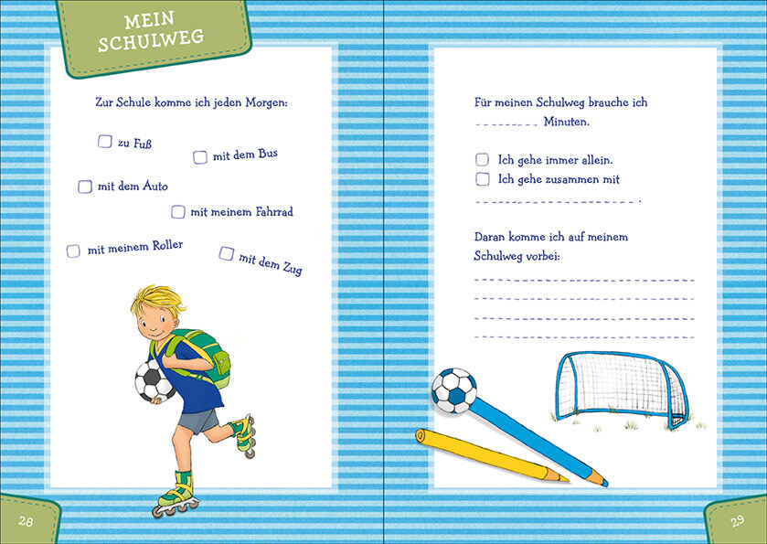 Endlich bist du ein Schulkind! Was steckt in deiner Schultüte? Wie heißen deine Klassenkameraden? Was steht auf dem Stundenplan? Das und noch viel mehr kannst du als echte Fußballfan in diesem bunten Eintragalbum mit Magnetverschluss und tollen Fußball -Motiv...