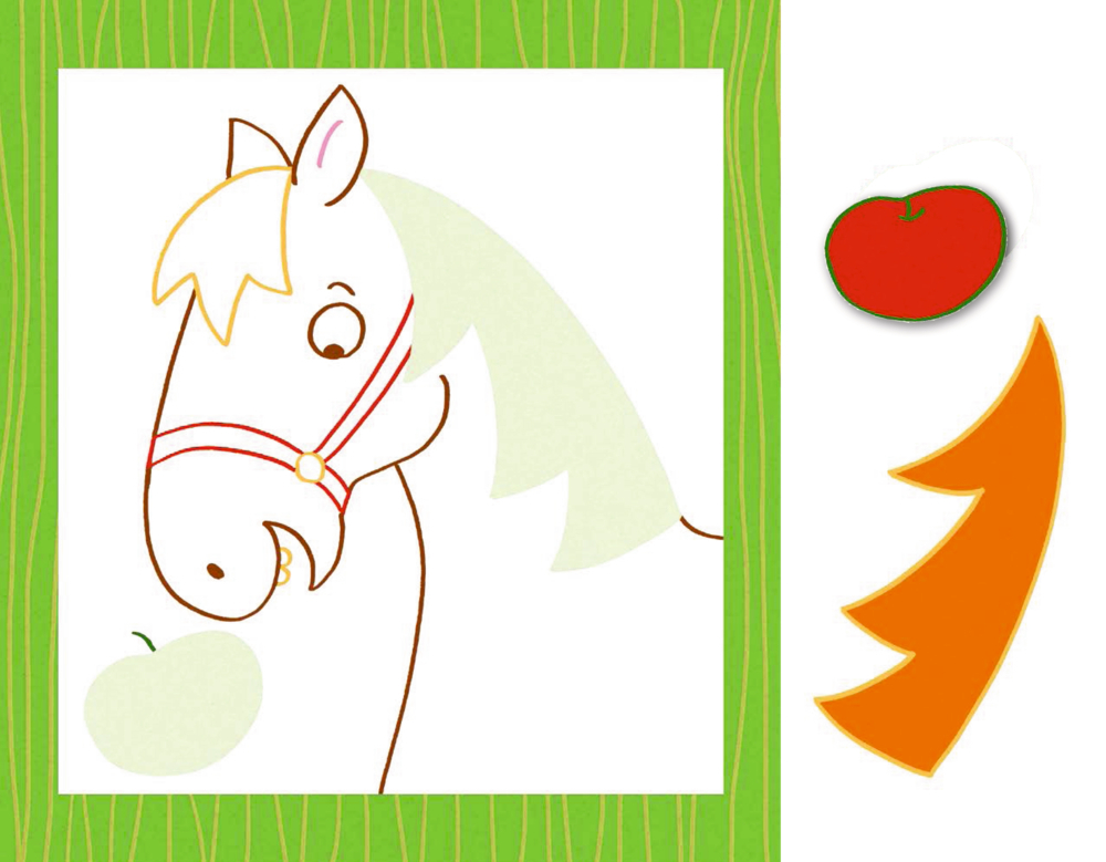 Kreativ mit den Kleinsten - so geht's: 1. Bild aussuchen, Blatt herauslösen, Motivstreifen abtrennen. 2. Motive ausschneiden und ins Bild kleben. 3. Bild ausmalen und den Namen auf die Rückseite schreiben. Mit kindersicherer Schere aus Kunststoff - schneidet n...
