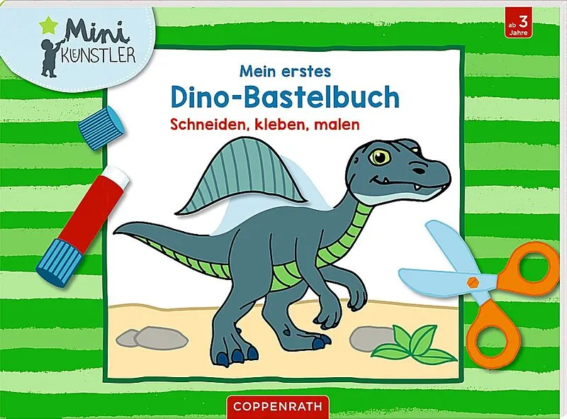 Ein Mal- und Ausschneidebuch für alle kleinen Künstler, die Dinos lieben. So geht's: 1. Ein Bild aussuchen und den rechten Streifen abtrennen. 2. Die Motive auf dem Streifen ausschneiden und an den vorgegebenen Stellen aufkleben. 3. Das Bild nach Lust und Laun...