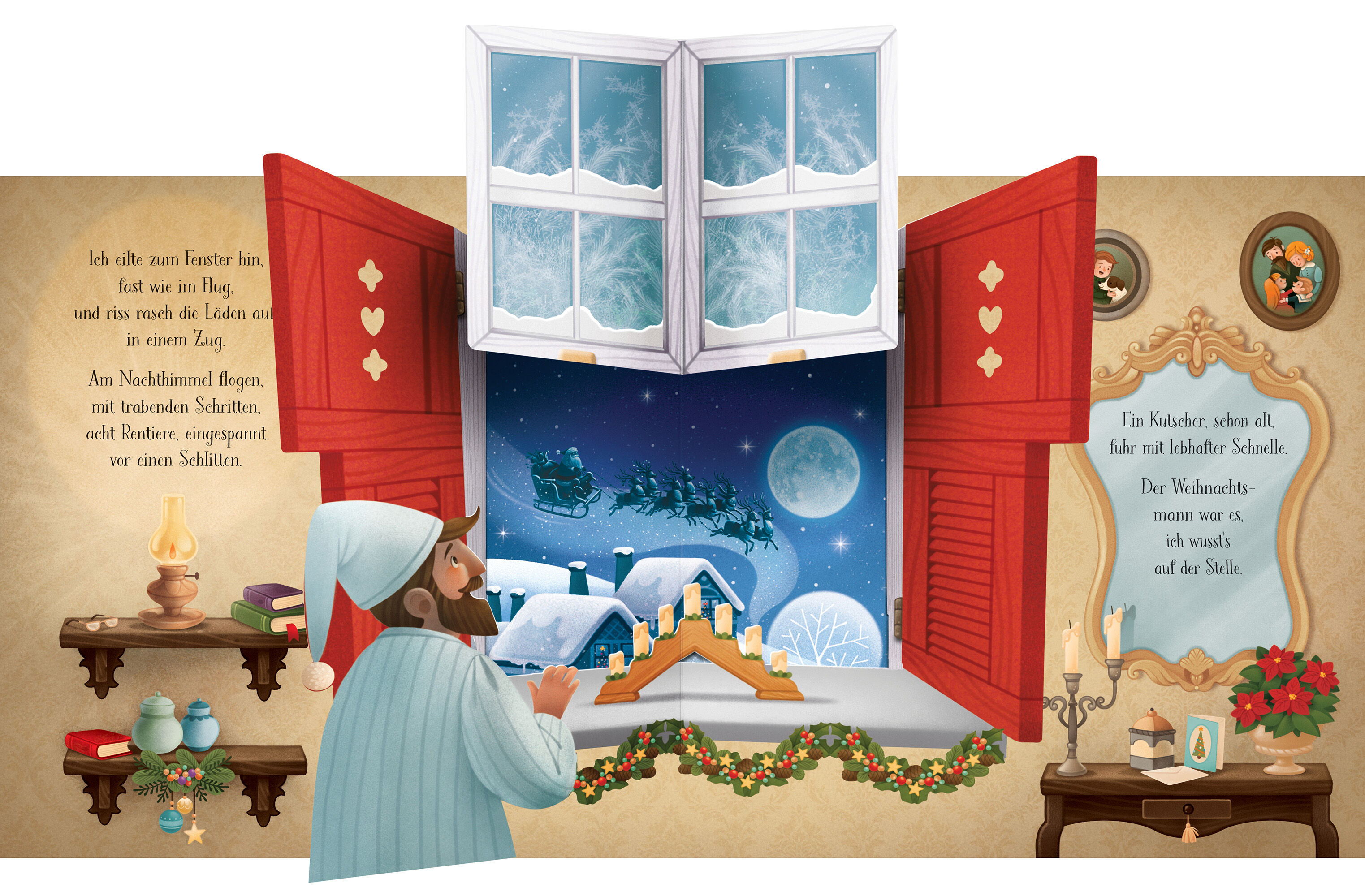 Am Abend vor Weihnachten schwieg alles im Haus, nicht ein Mucks war zu hör'n, nicht mal der einer Maus Hier wird eine gekürzte Version des klassischen Gedichts durch liebevolle Illustrationen und Pop-ups zum Leben erweckt von magischen Rentieren über Geschenk...