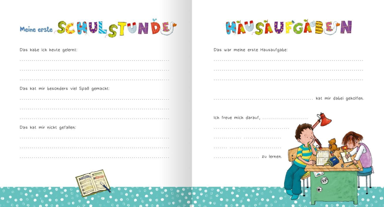 Endlich fängt die Schule an! Und damit das erste Schuljahr und besonders der erste Tag niemals in Vergessenheit geraten, können in diesem Erinnerungsbuch die schönsten Momente als Schulkind festgehalten werden. Buntes Eintragbuch für ABC-Schützen Dieses liebe...