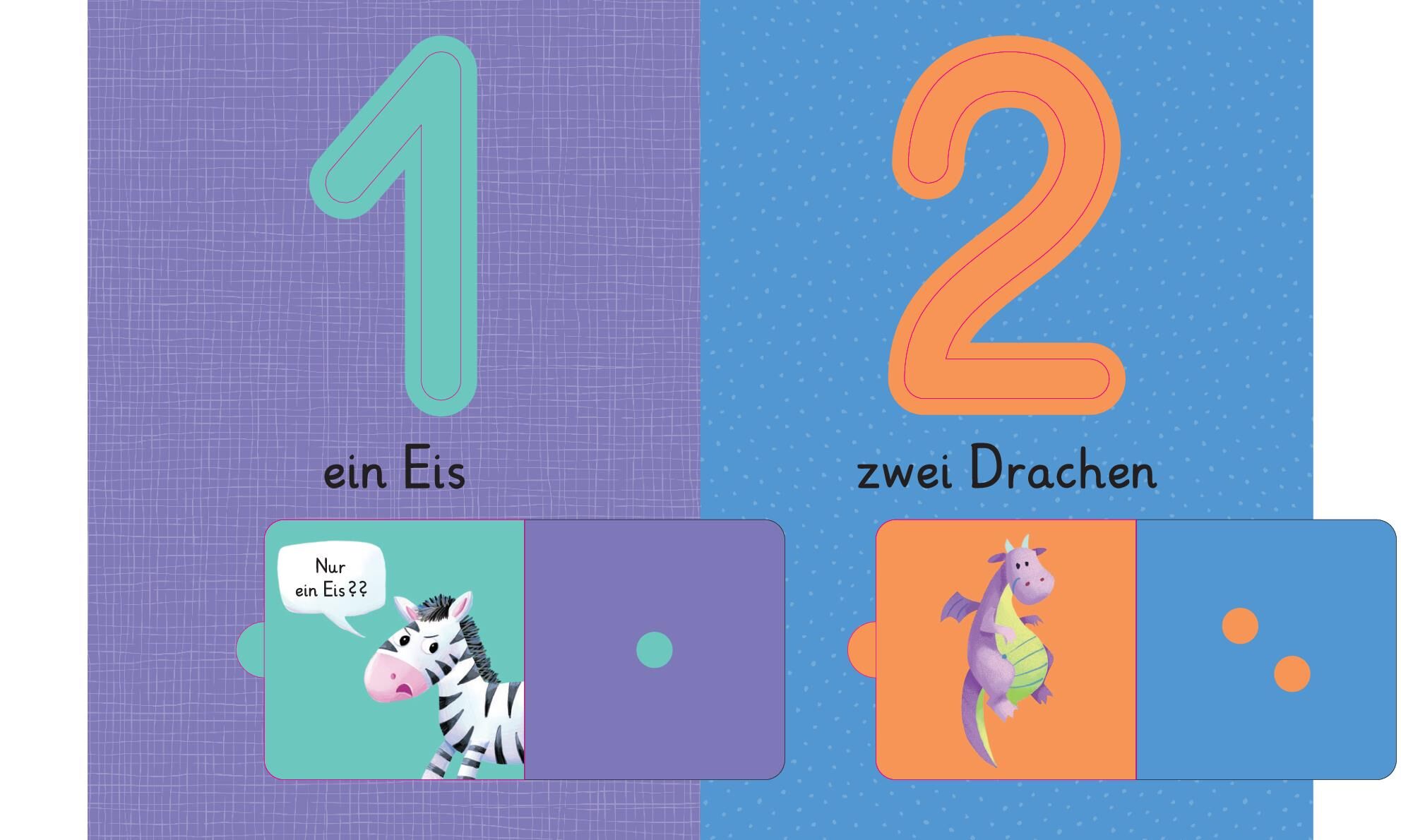 Mit Klappen zum Entdecken: Jede Seite verbirgt unter lustigen Klappen kleine Überraschungen, die Neugier und Freude am Zählen fördern.