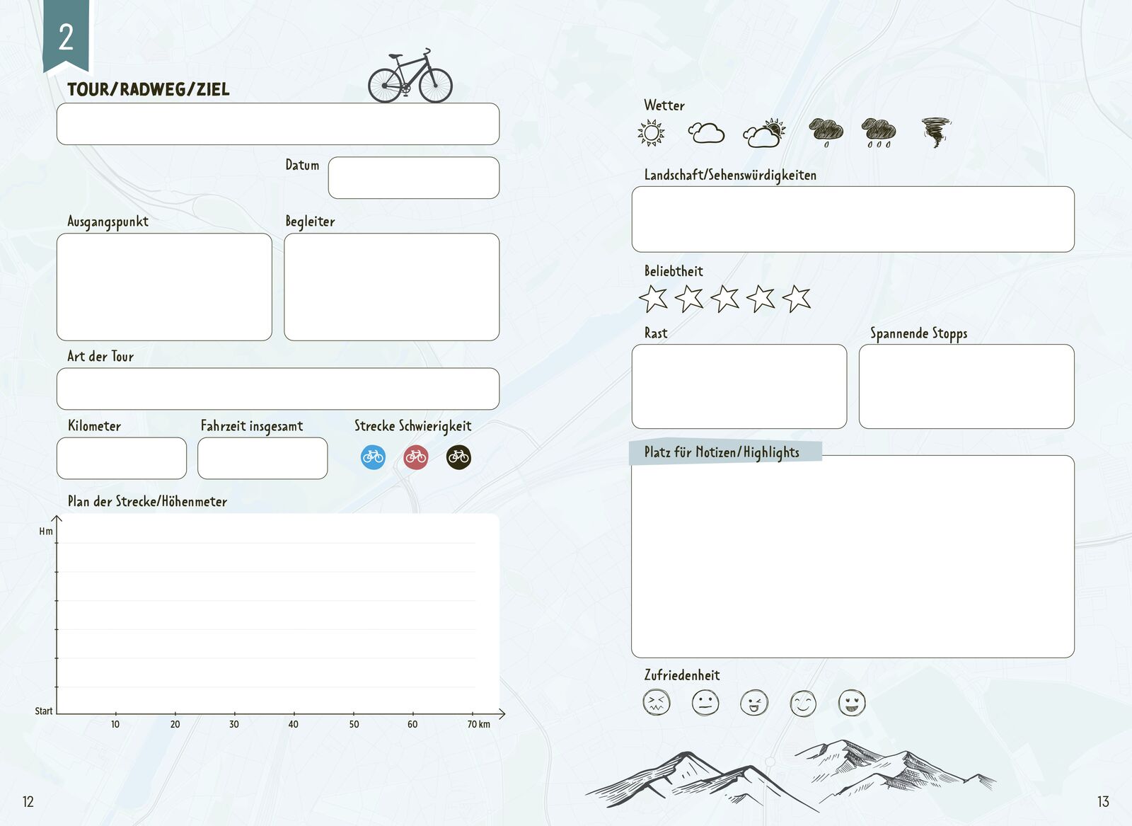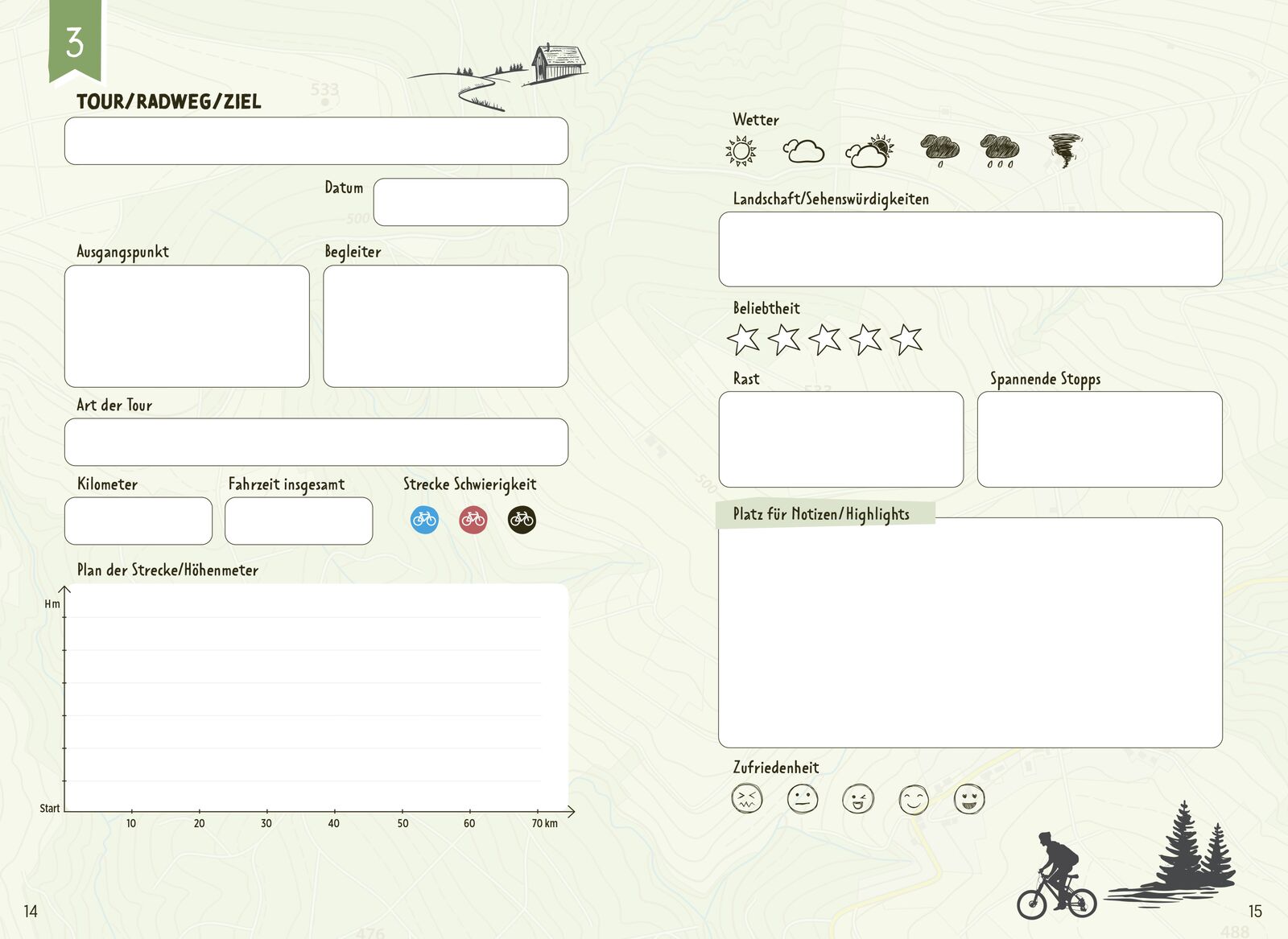 Besonderes Fahrradtouren-Buch zum Selbstgestalten Du liebst es, die Welt auf deinem Fahrrad zu erkunden? Egal, ob bei kleinen Radausflügen oder bei mehrtägigen Fahrradurlauben Hauptsache, das Freiheitsgefühl auf zwei Rädern und Abenteuer erleben. Das Fahrradt...
