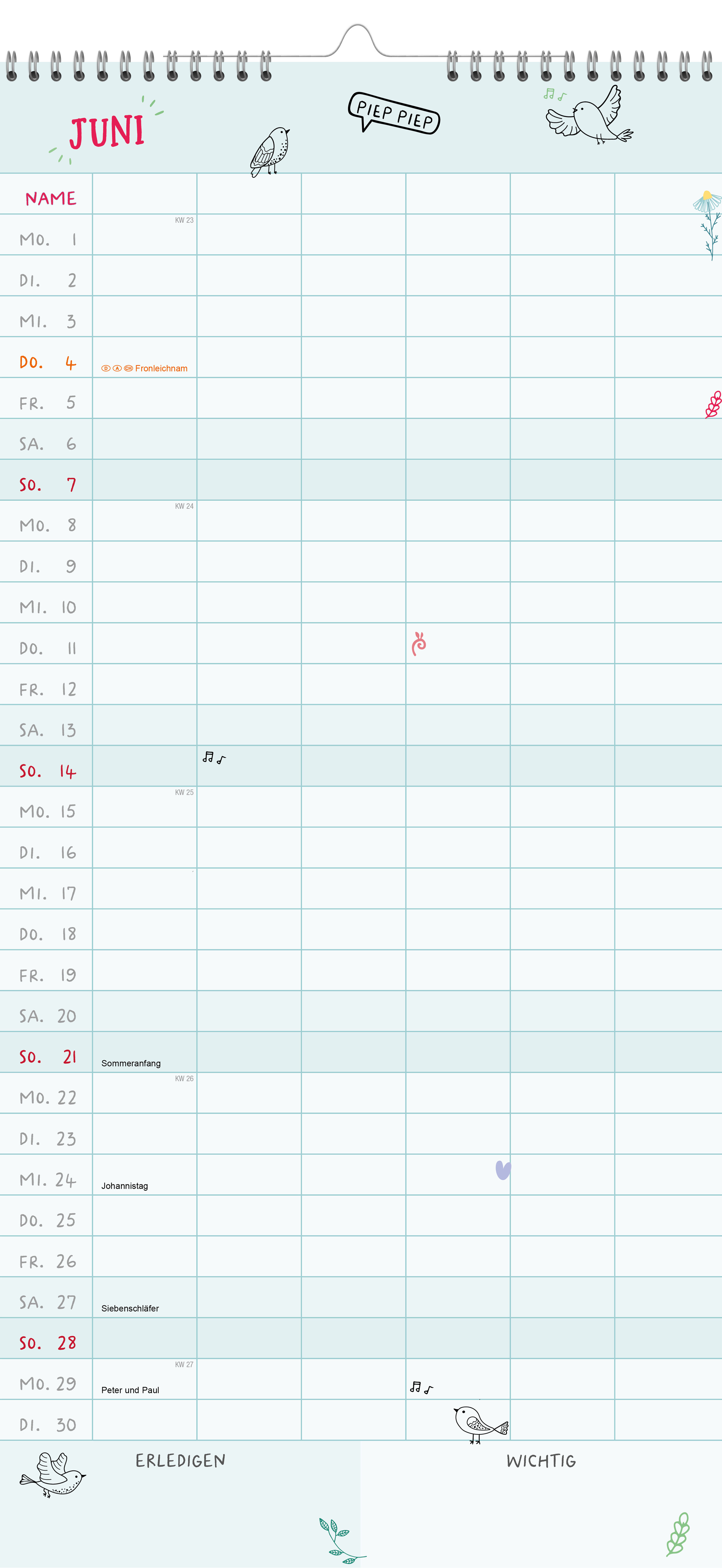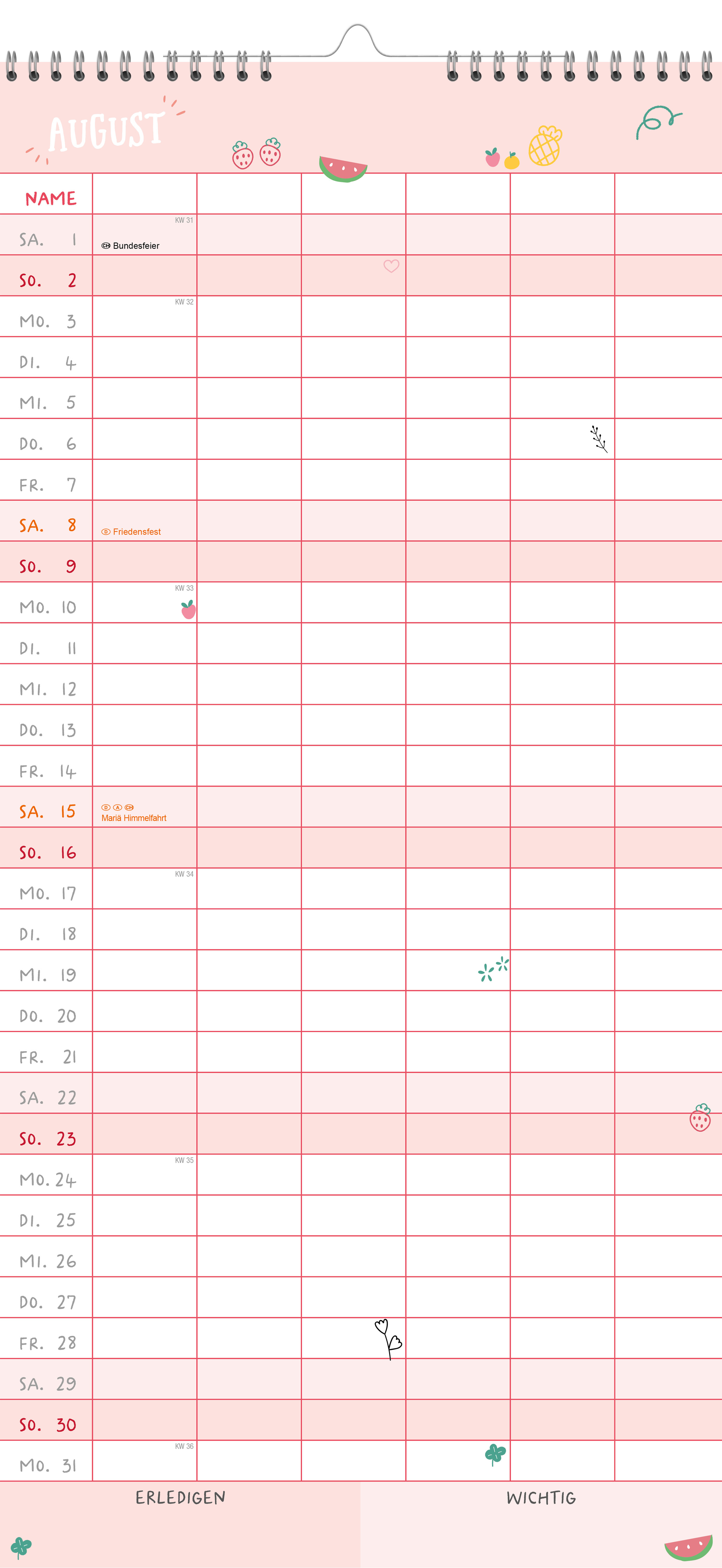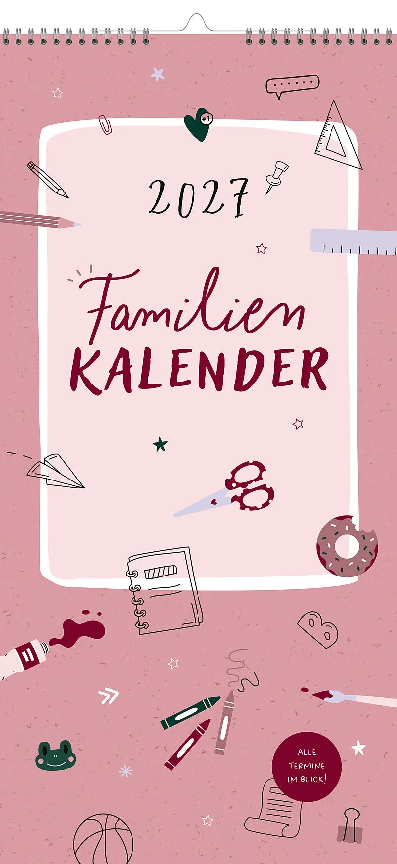 Der Mein Family-Planer 2027 macht Familienorganisation leicht: Mit übersichtlichen Monatsansichten und sechs praktischen Spalten bietet er genug Platz, um alle Termine und Aktivitäten der Familienmitglieder im Blick zu behalten von Arztbesuchen über Schulfest...
