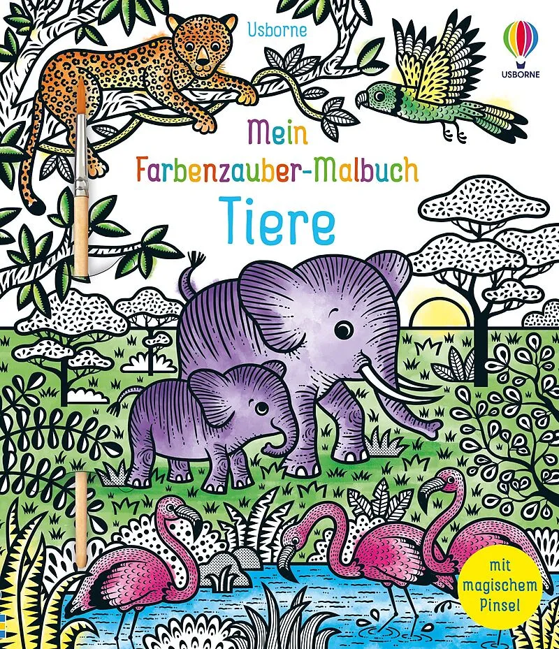 Tierischer Malspaß ganz ohne Stifte Tauche den magischen Pinsel ins Wasser und male damit die schwarz-weißen Tiere aus. Wie von Zauberhand werden Pinguine, Nilpferde, Eichhörnchen und viele andere Tiere auf den heraustrennbaren Seiten farbenfroh zum Leben erw...