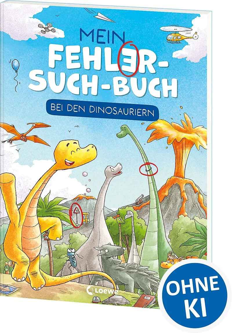 Mein Fehler-Such-Buch - Bei den Dinosauriern Loewe-Bücher: garantiert ohne KI Lesen, suchen, Fehler finden Heute ist der kleine Dino Nik an der Reihe, die Zutaten fürs Abendessen zu besorgen. Da kann er die Fehler, die sich plötzlich im Wald, auf dem Fluss und...