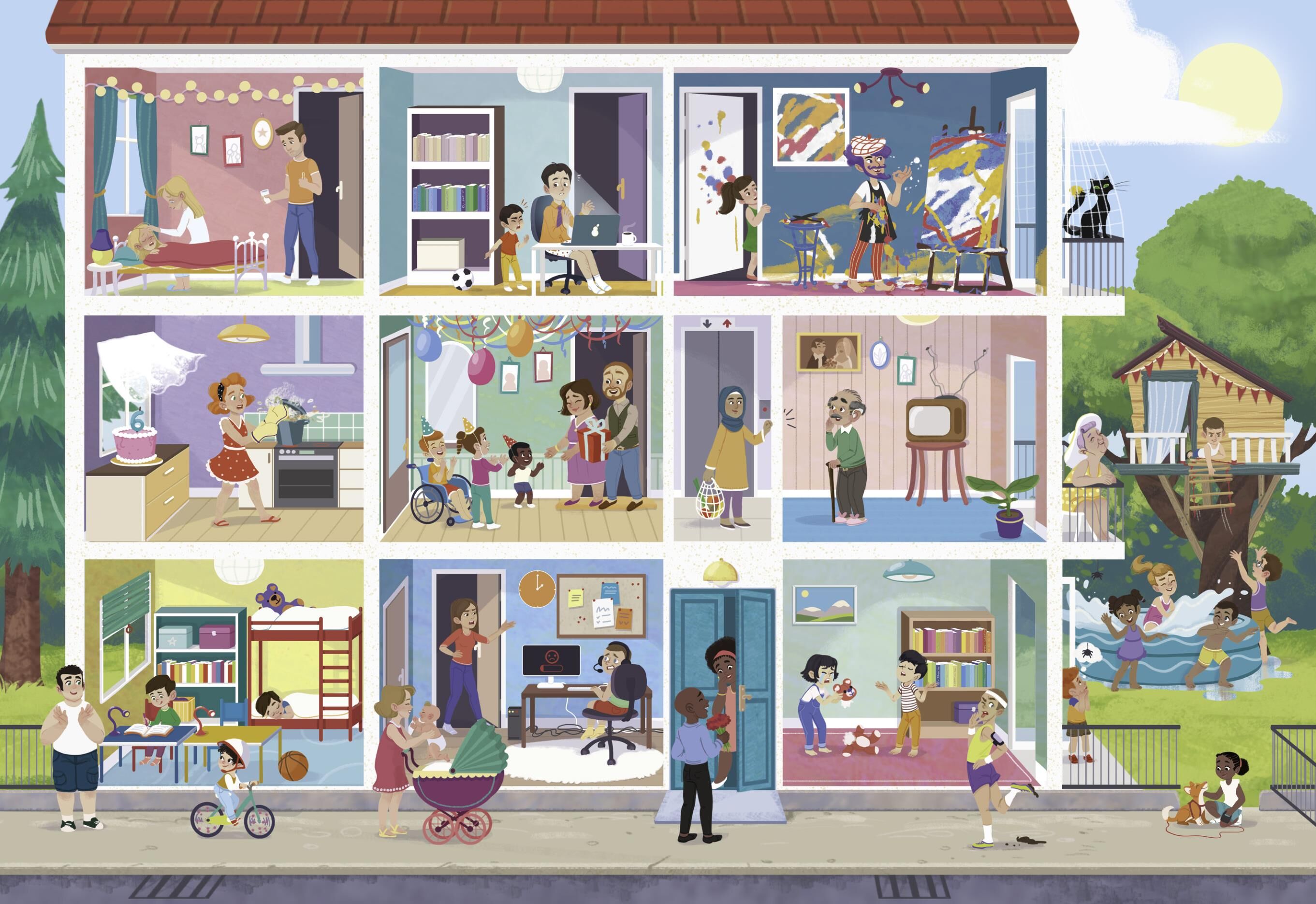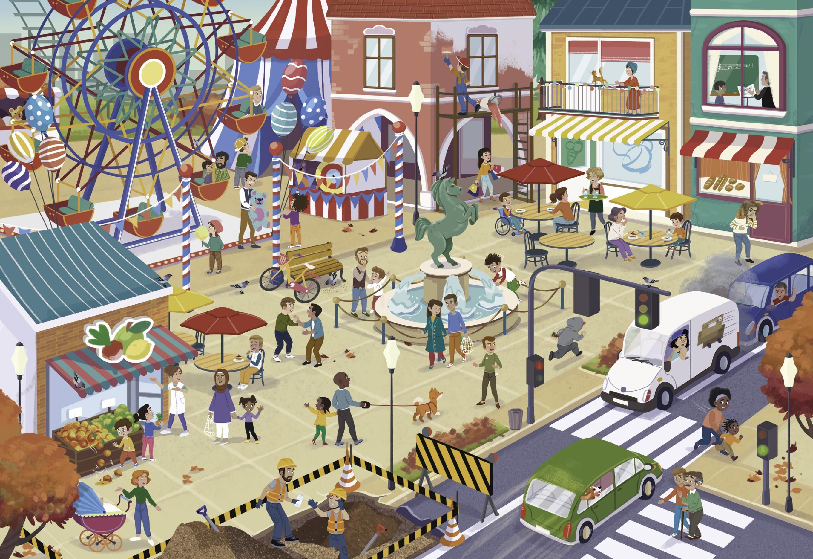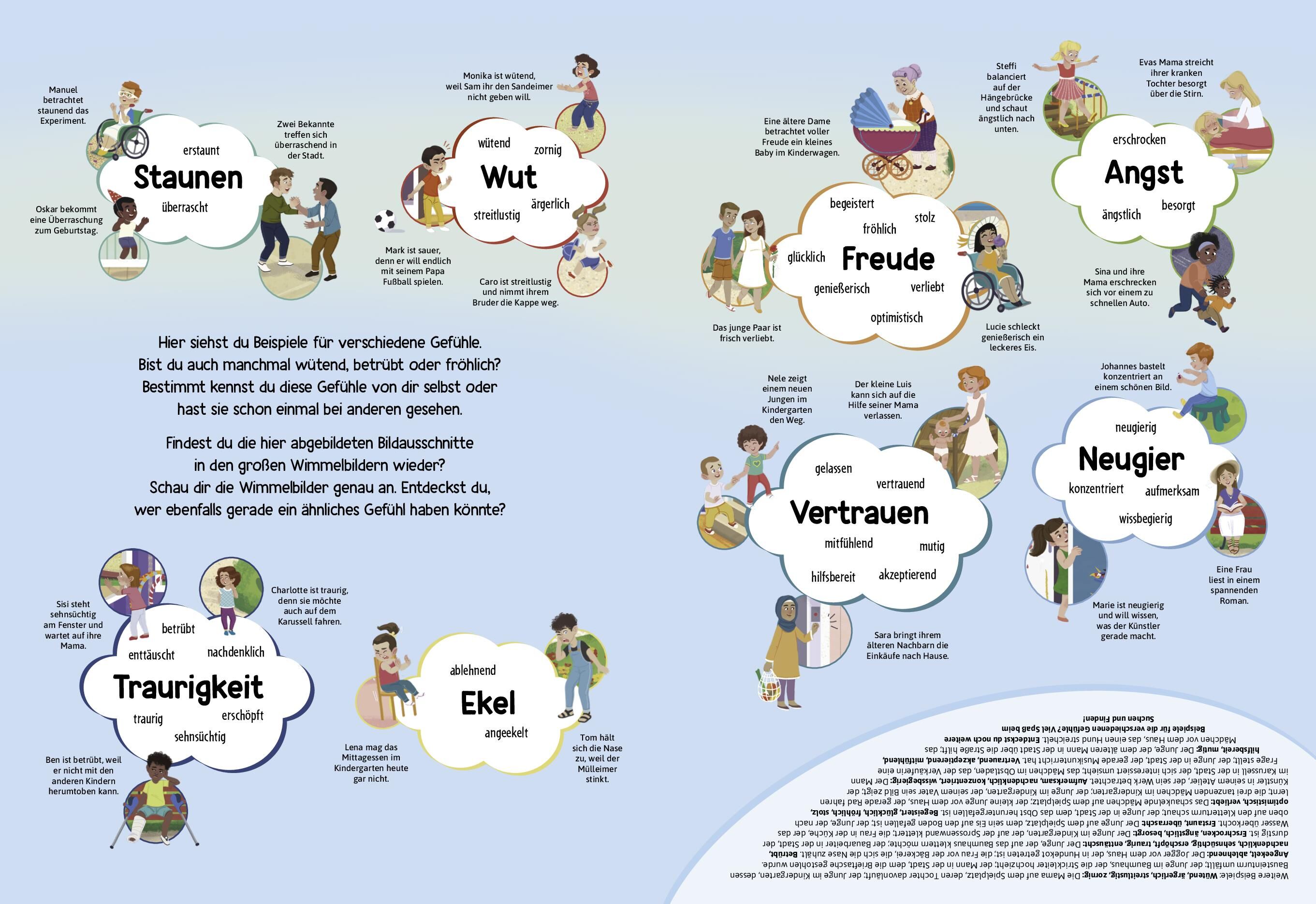 Mein Gefühle-Wimmelbuch • Weicher, wattierter Einband für kleine Hände • Großformat 24 x 33 cm mit vielen Alltagsszenen • 5 verschiedene Szenerien mit Such- und Zählaufgaben • Alle Rätsel mit Lösungen kinderleicht prüfen • Fördert Wah...
