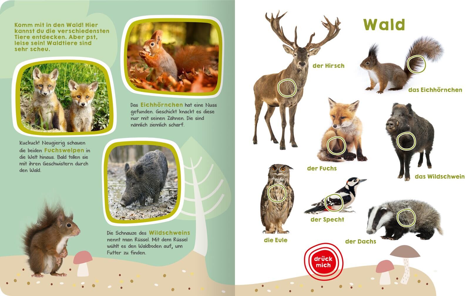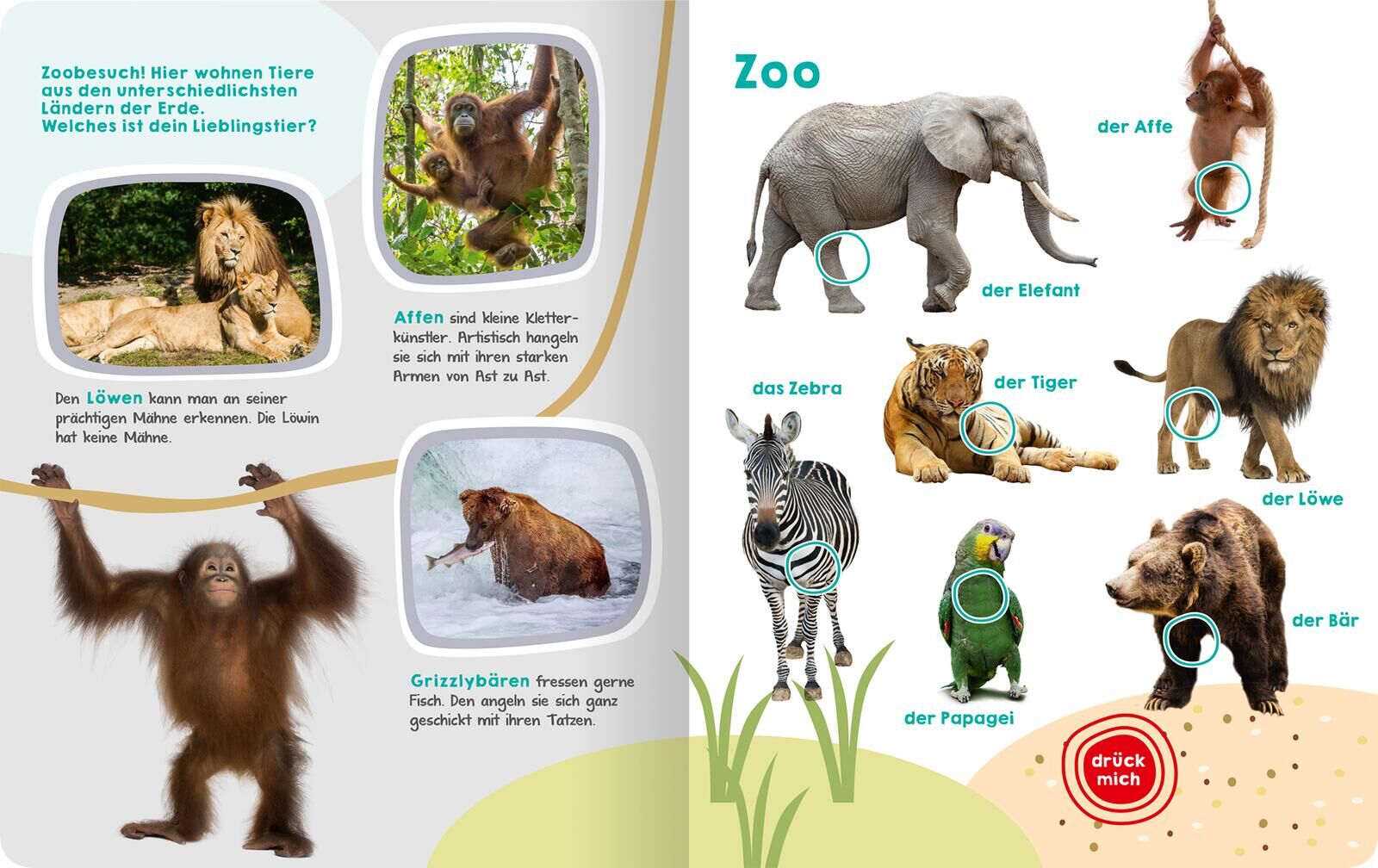 Mein großes Buch der Tiergeräusche Entdecke die Welt der Tiergeräusche! Wie macht die Katze? Wie klingt der Frosch? Und wie singt das Rotkehlchen? In diesem Kinderbuch werden verschiedene Tiere auf Knopfdruck lebendig. Das bunte Bilderbuch mit über 50 Soundele...