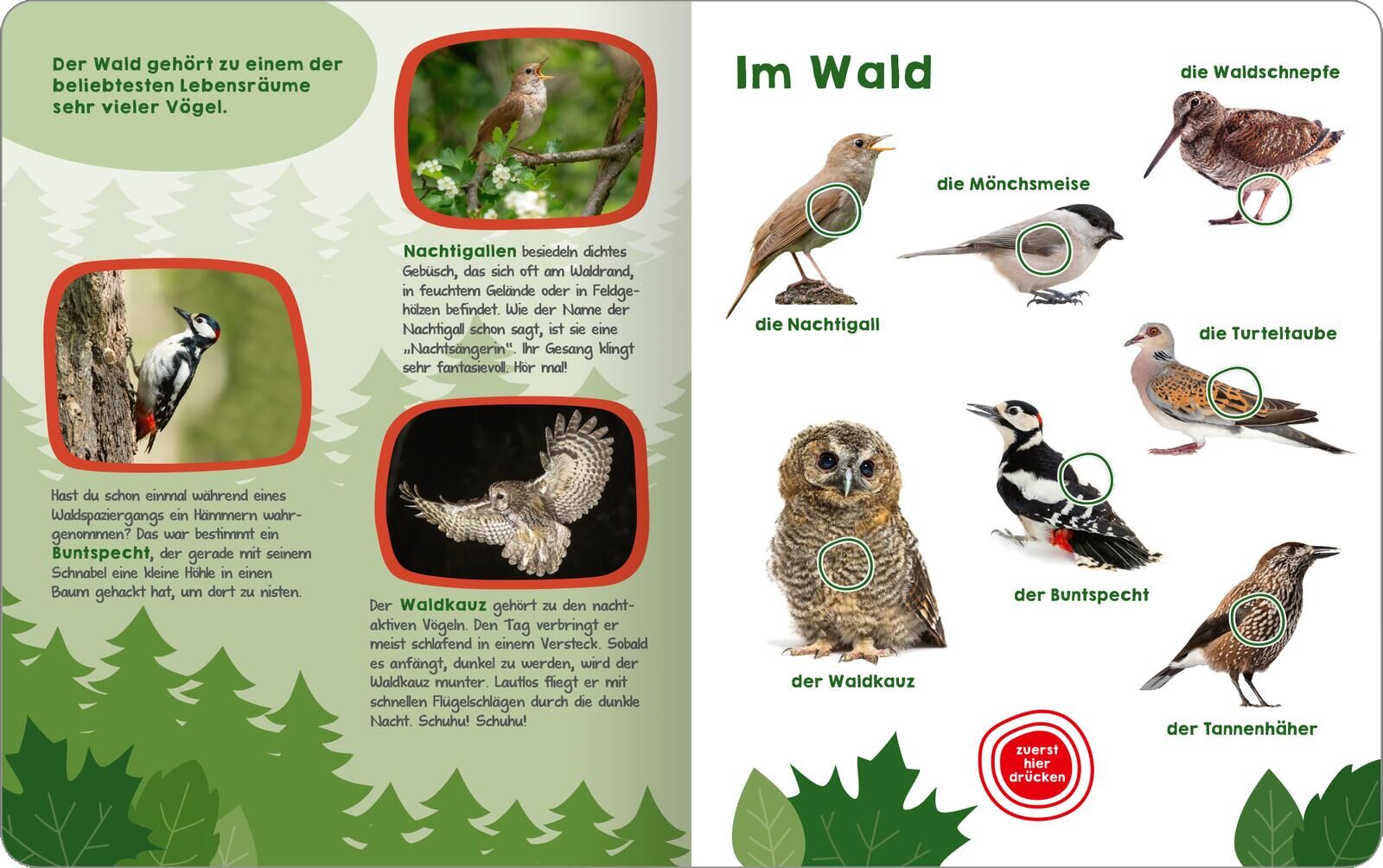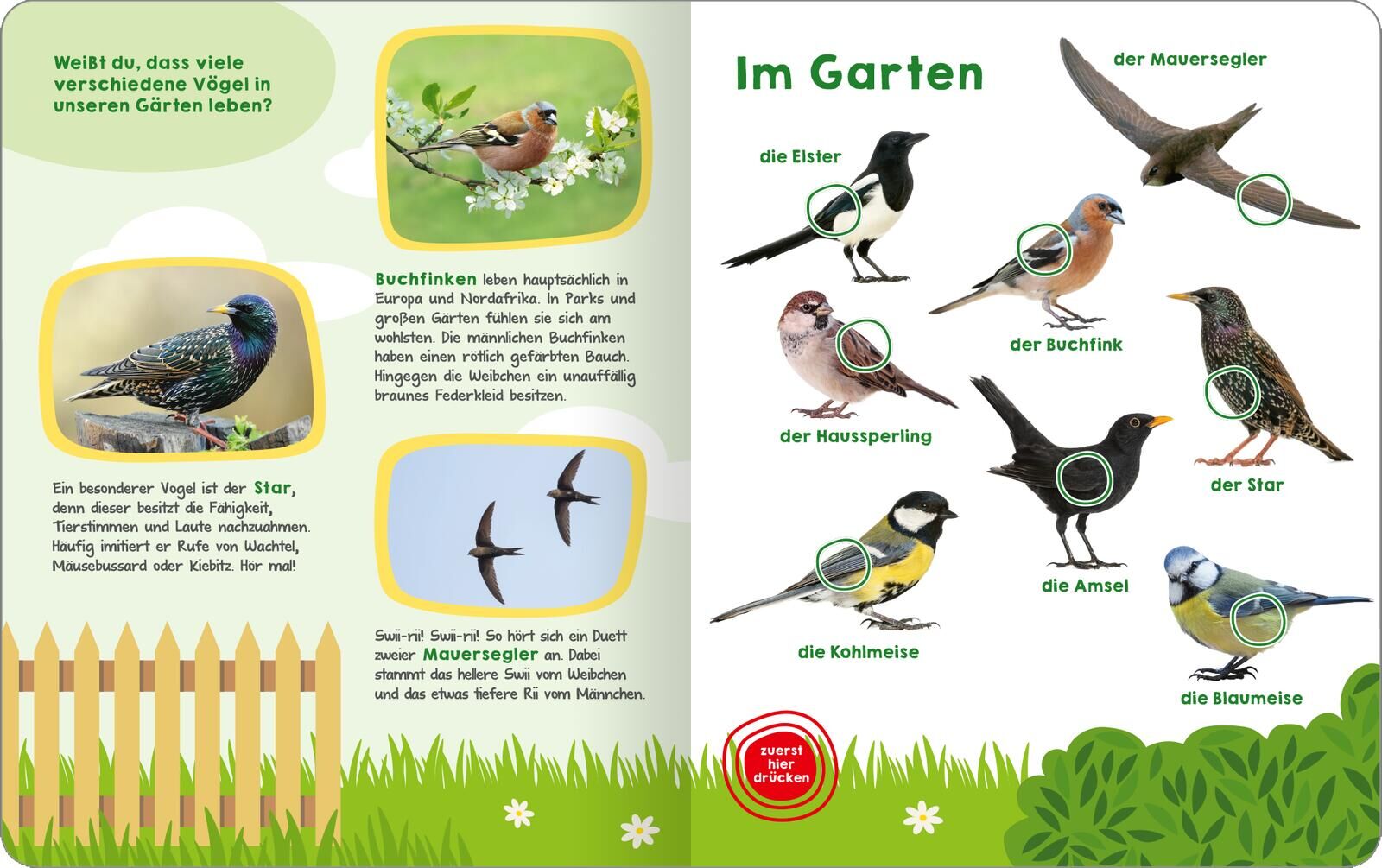 Mein großes Buch der Vogelstimmen Was zwitschert denn da? Wie klingt der Wellensittich? Wie macht die Ente? Und wie singt die Nachtigall? In diesem großen Soundbuch werden die bekanntesten und beliebtesten Vögel auf Knopfdruck lebendig. Hochwertige Fotos und k...