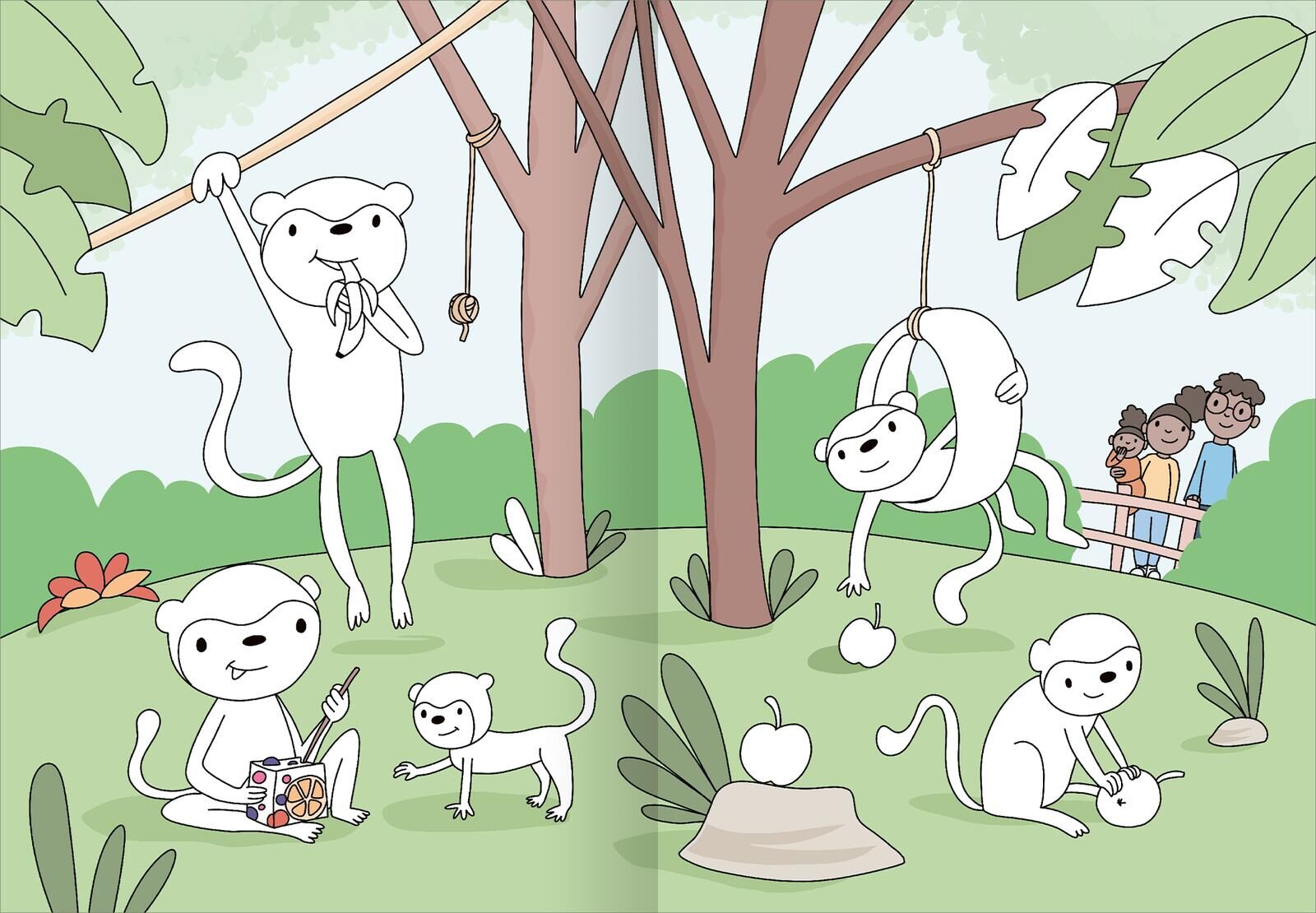 Zoo-Fans aufgepasst! Ob Löwe, Giraffe oder Nilpferd hier warten zahlreiche Szenen im Tiergarten darauf, von dir kunterbunt angemalt zu werden. Farbige Hintergründe: Schwarz-weiß war gestern! Die Seiten sind bereits bunt gestaltet und laden zum Entdecken und W...