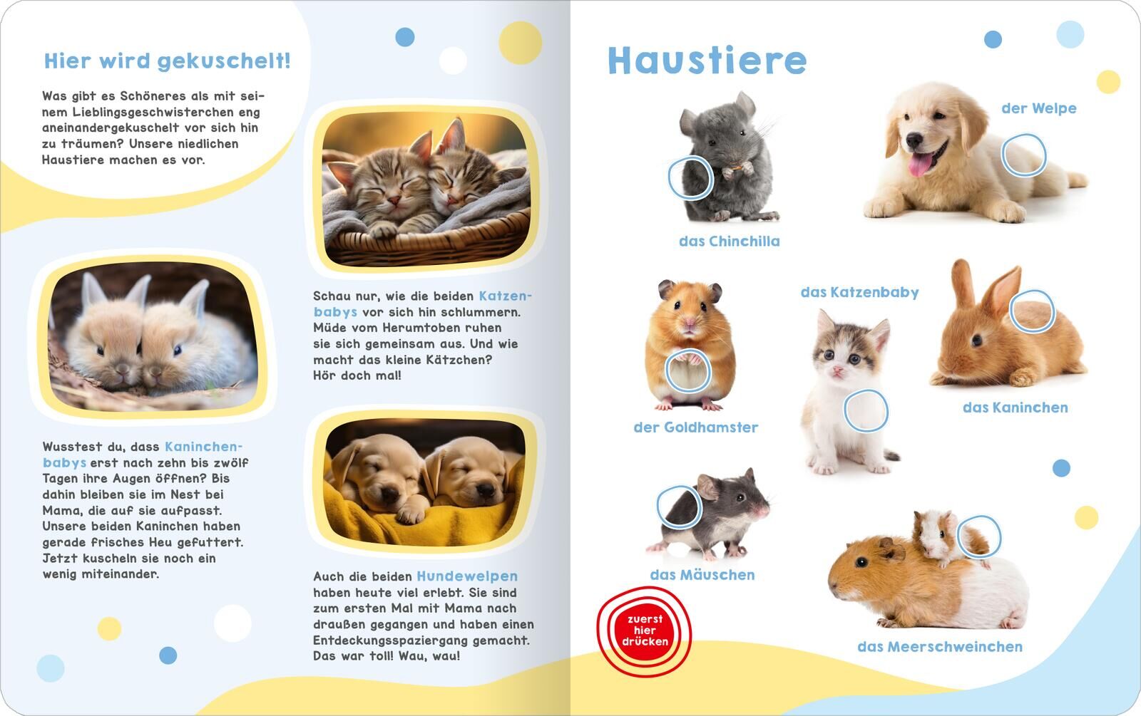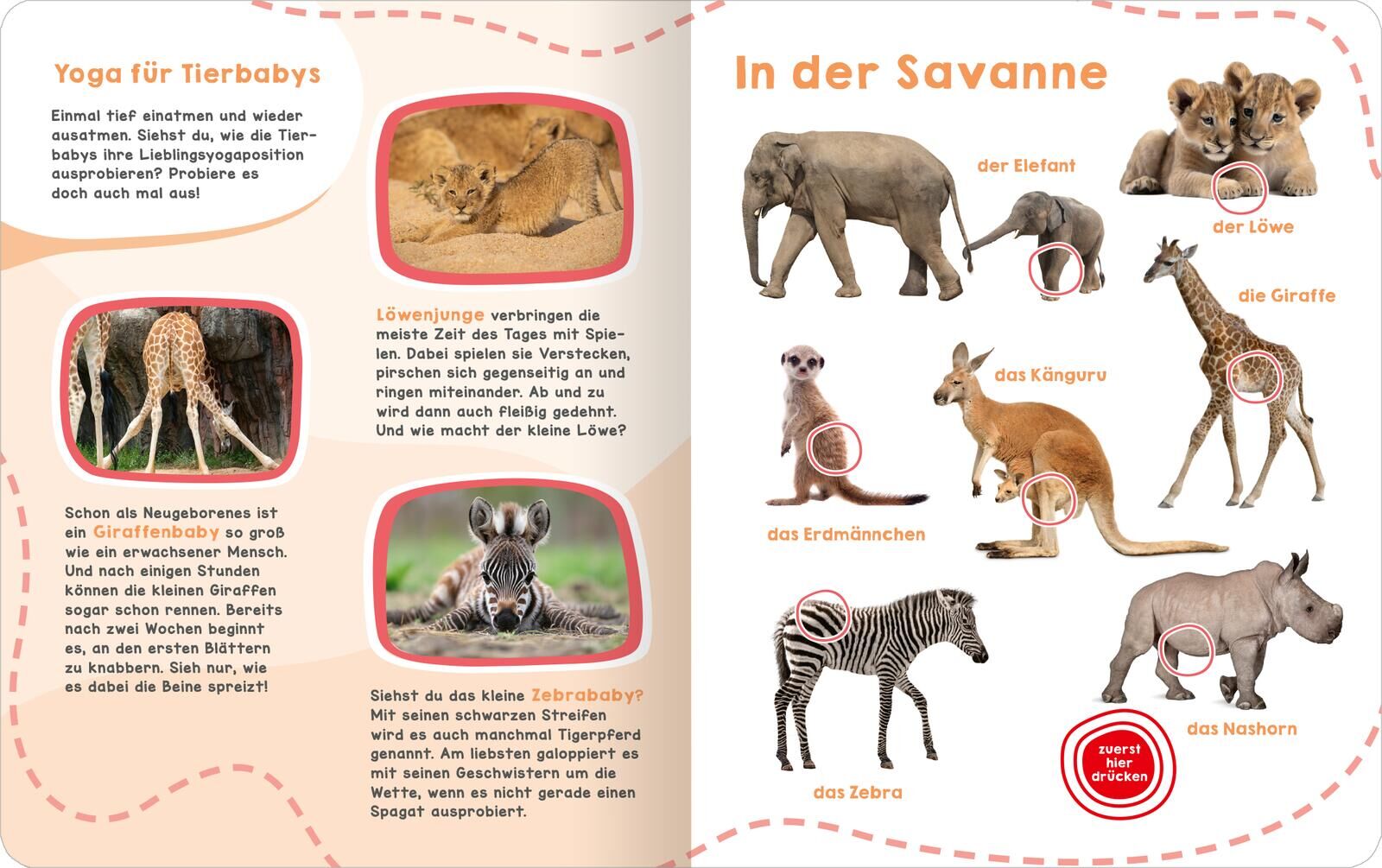 Mein großes Geräuschebuch - Tierbabys Entdecke die Welt der Tierbabys! Wie macht das Kätzchen? Wie klingt das Küken? Und wie bellt der Welpe? In diesem Kinderbuch werden verschiedene Tierbabys auf Knopfdruck lebendig. Das bunte Bilderbuch mit über 40 Soundelem...