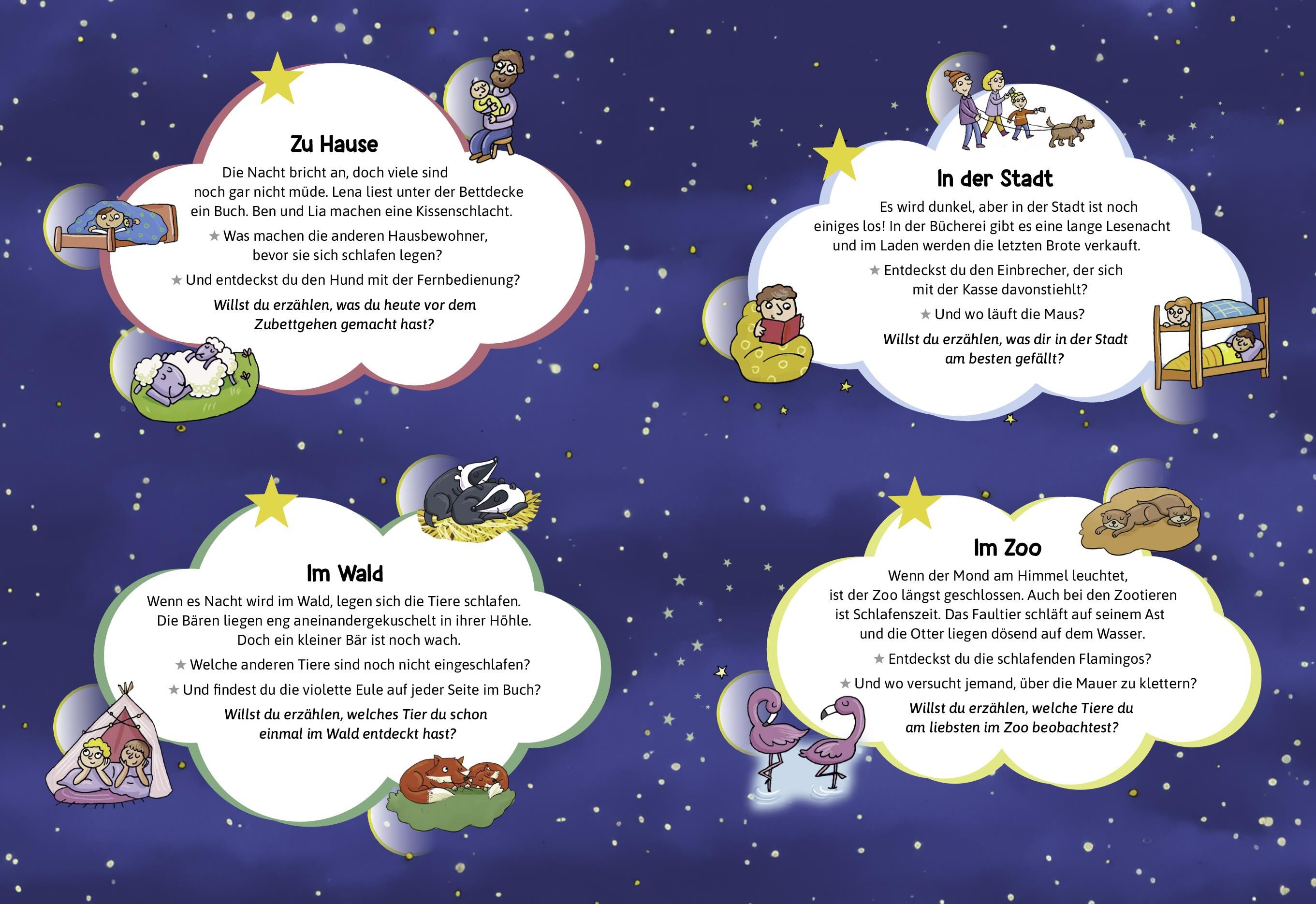 Wimmelbuch Mein Gute Nacht-Wimmelbuch • Wattierter, weicher Einband ideal für Kinderhände • Großformat 24 x 33 cm mit detailreichen Szenen • 5 verschiedene Szenerien mit lustigen Such- und Zählaufgaben • Alle Rätsel mit Lösungen selbststän...