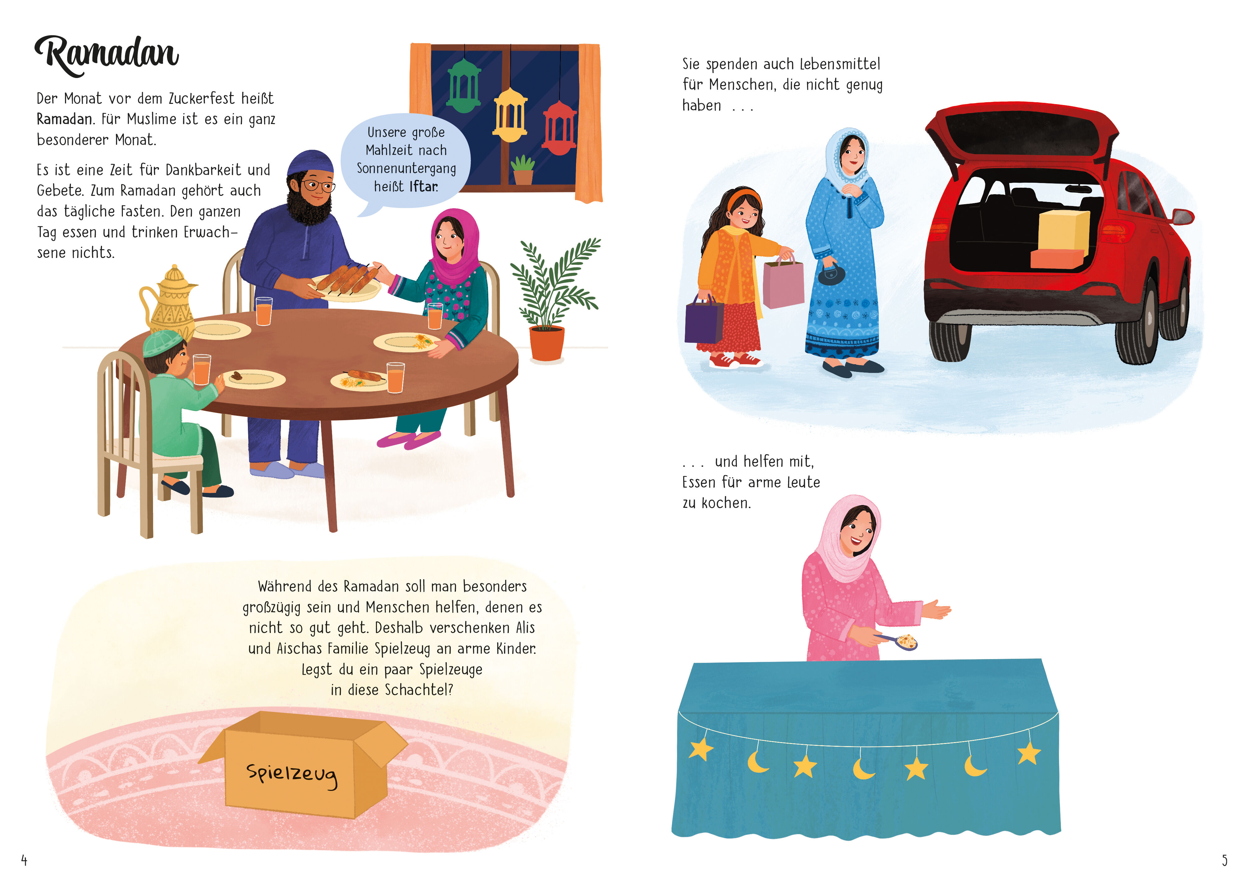 Ali und Aischa sind aufgeregt! Es ist Ramadan und bald wird die ganze Familie zusammenkommen, um das Zuckerfest zu feiern. Begleite sie bei den Vorbereitungen für dieses wichtige islamische Fest und gestalte mit über 200 wiederablösbaren Stickern die bunten Sz...