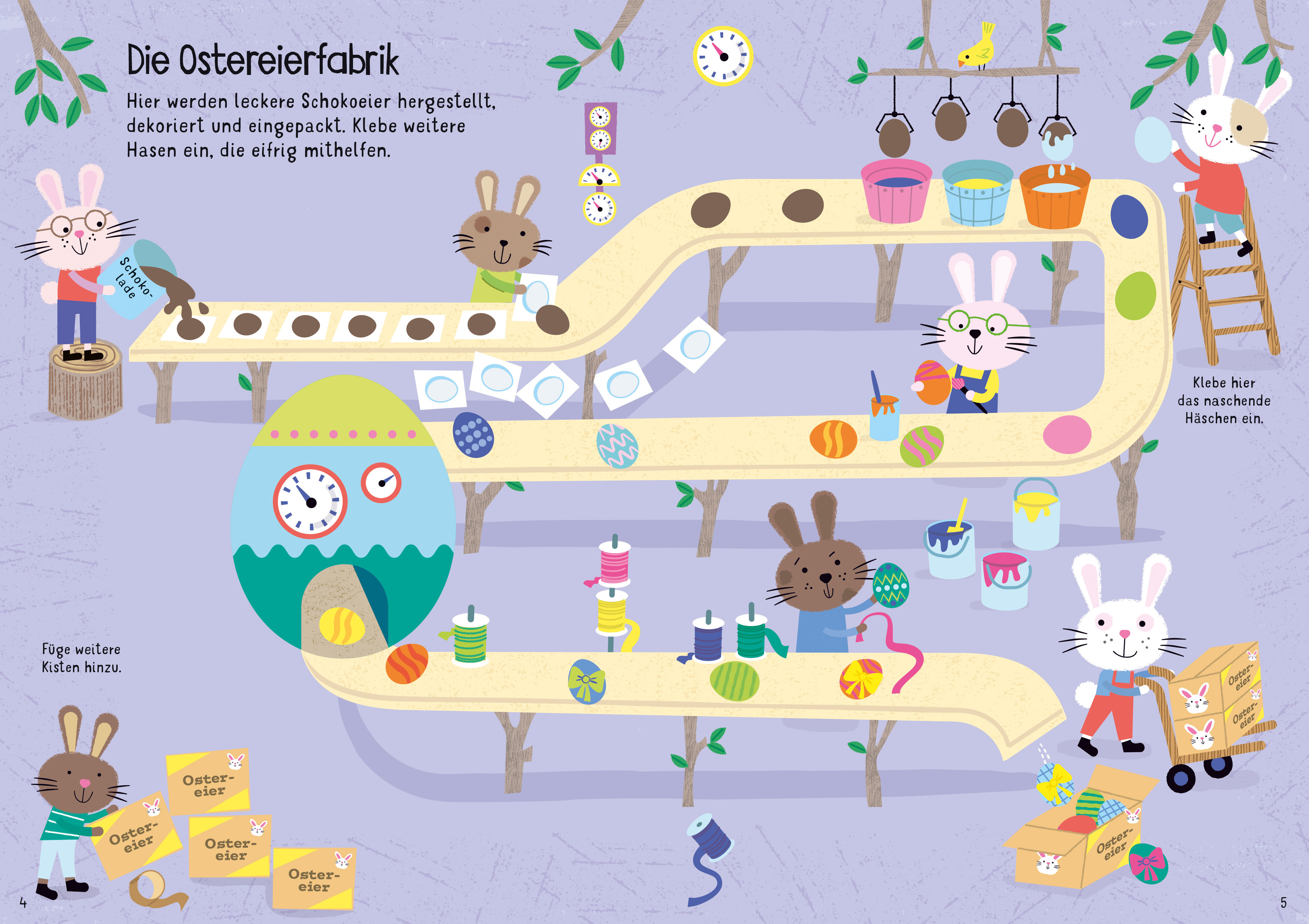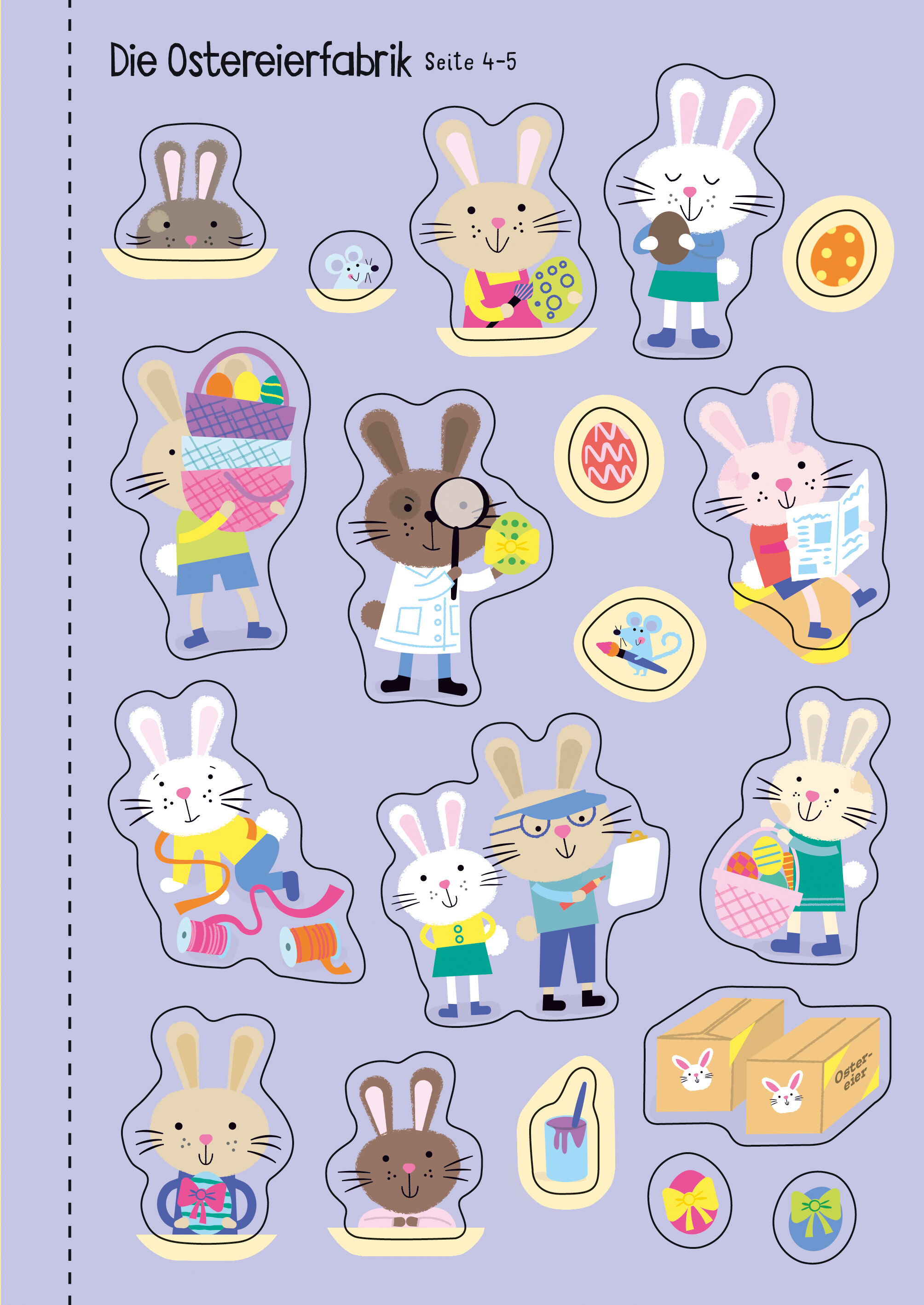 Hilf den Osterhasen beim Eierverstecken und bereite mit ihnen ein fröhliches Fest im Wald vor mit über 190 wiederablösbaren Stickern kannst du die bunten Szenen gestalten. Mit den Häschen Ostern vorbereiten Hilf den Osterhasen beim Eierverstecken und bereite m...