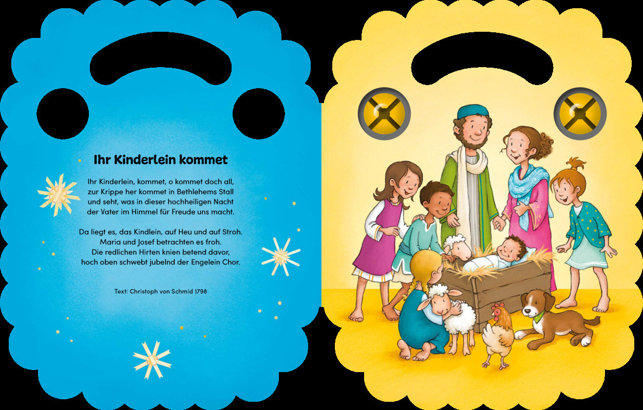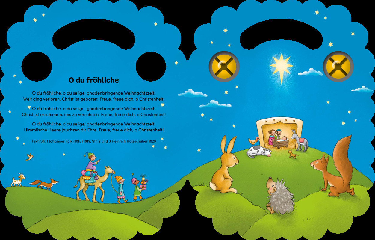 Vier bekannte Kinderlieder laden hier zum Mitsingen und Musizieren ein. Am Handgriff lässt sich das Buch gut festhalten, um die eingearbeiteten Glöckchen zum Klingen zu bringen. Mit: »Ihr Kinderlein, kommet«, »Weihnachten ist wunderbar«, »Eine Kerze leuchtet« ...