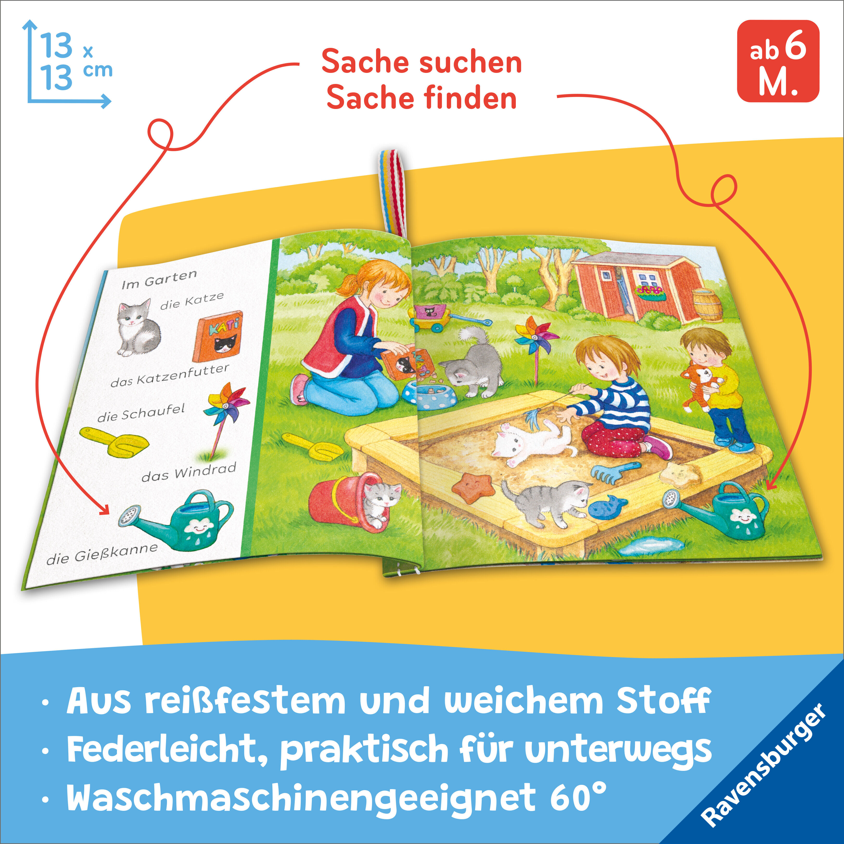 Stoffbuch zum Kuscheln, Knabbern und Baden Katzen, Hunde, Kaninchen und andere süße Tiere. Liebevolle Illustrationen bieten viele Möglichkeiten zum Suchen und Benennen. Die beliebte Sachen-suchen-Reihe nun als Knuddel-Knautsch-Buch: Dieses federleichte Stoffbu...