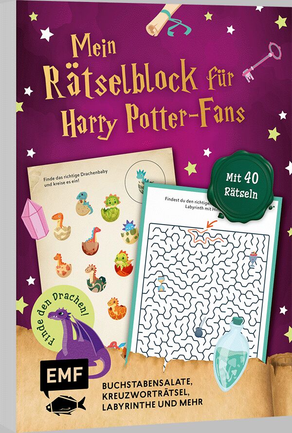 Der magische Rätselblock für alle Harry Potter-Fans ab 8 Jahren! Tauche ein in die Welt der Hexen und Zauberer und rätsel dich durch das Zauber-Universum. Anhand von zauberhaften Buchstabensalaten, verhexten Kreuzworträtseln und magischen Labyrinthen werden Z...