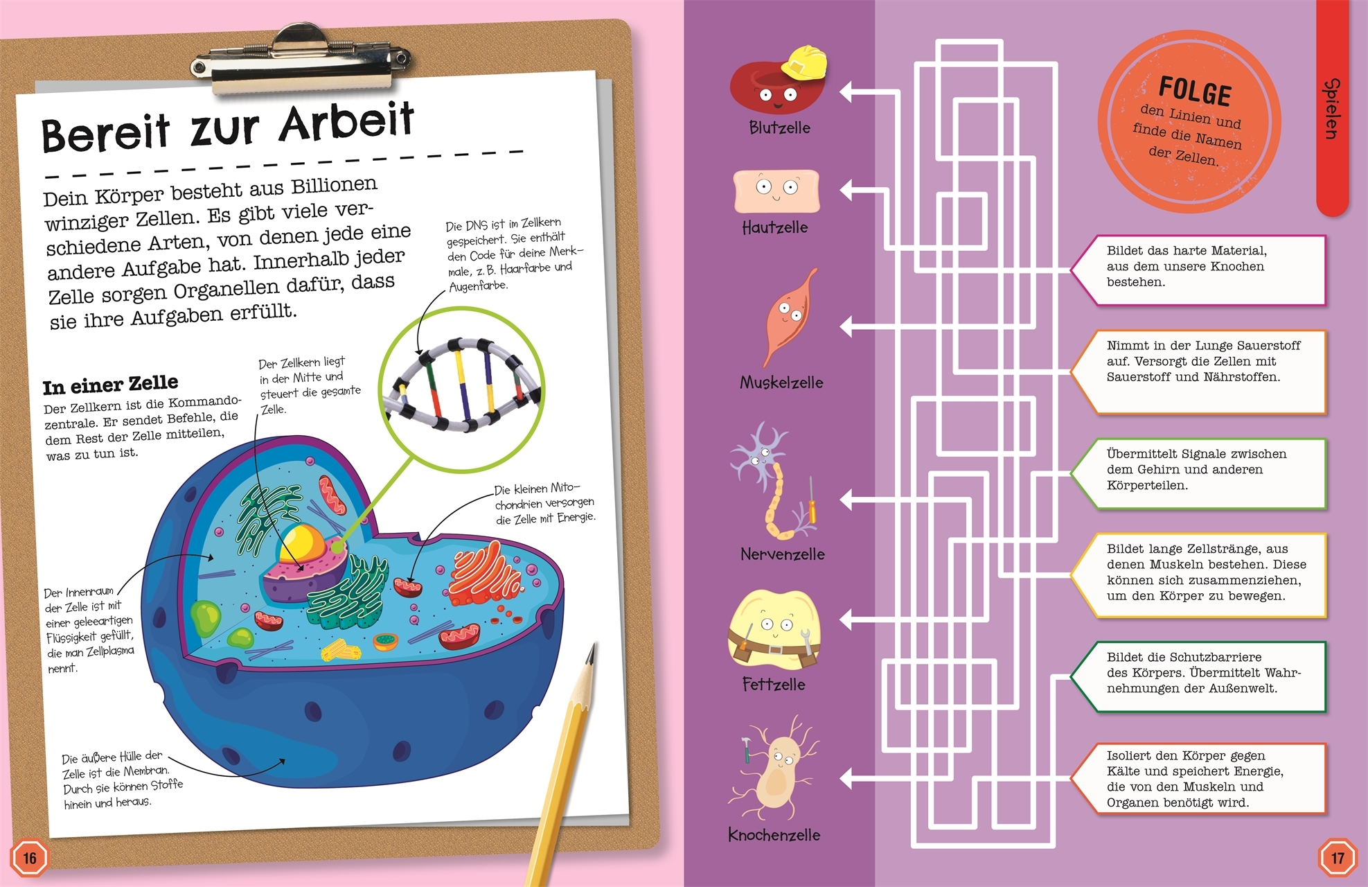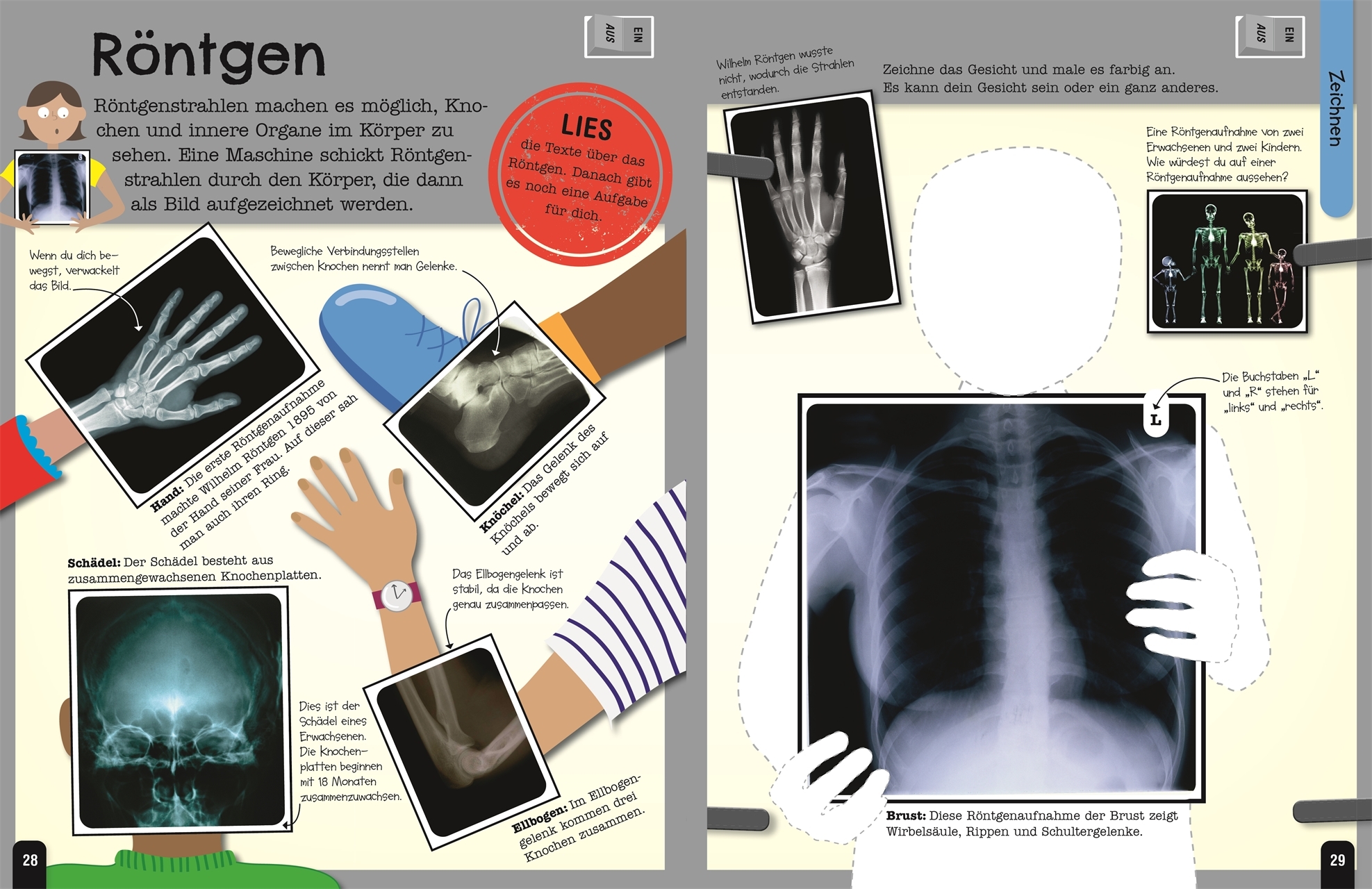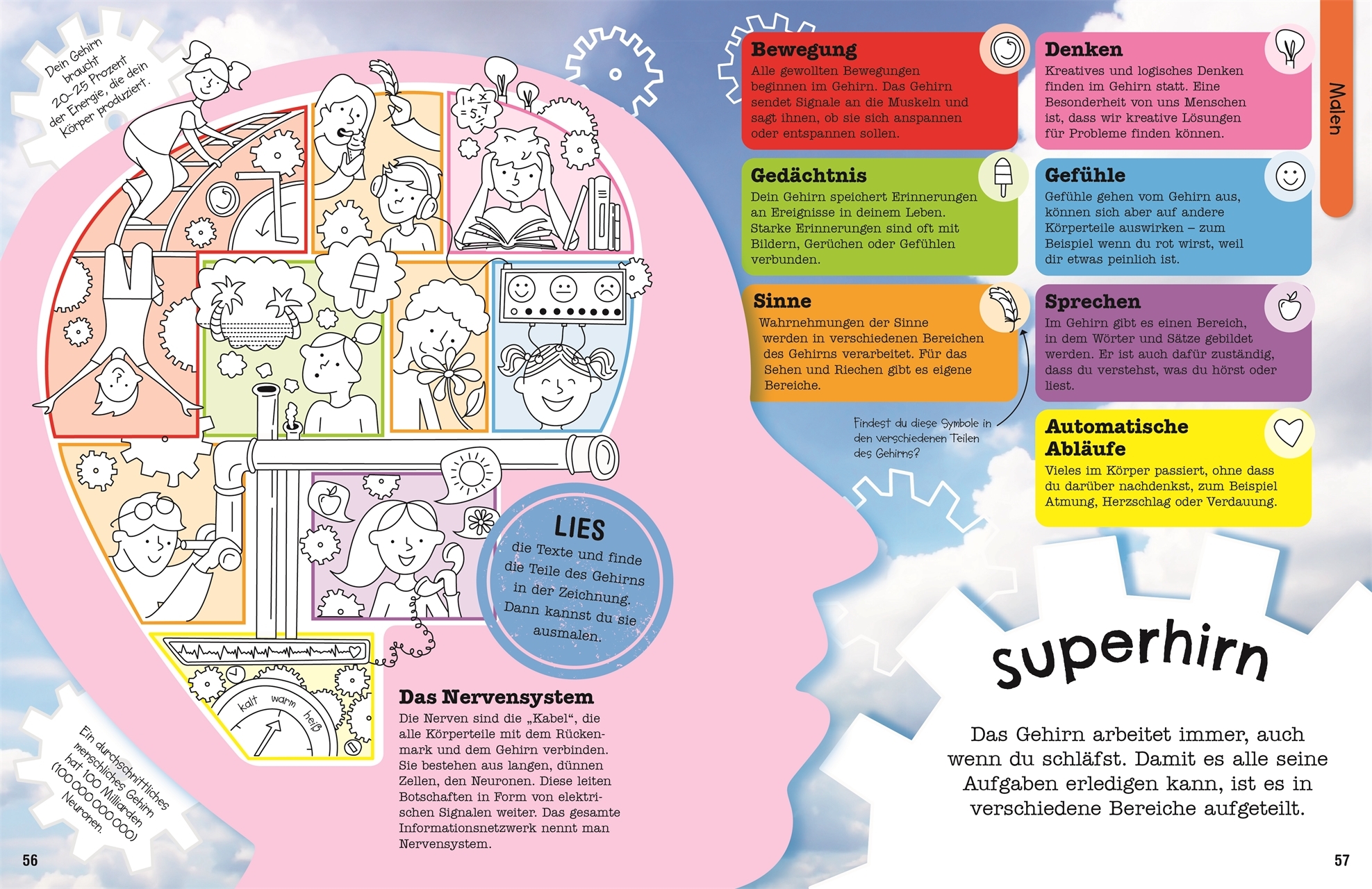 Mein Mitmach-Wissens-Kick! Ausmalen, spielen, Rätsel lösen und ganz nebenbei Spannendes über den eigenen Körper erfahren! Wie entsteht ein Röntgenbild? Und über welche Superkrafte verfügt das menschliche Gehirn? Mit der Mitmach-Wissens-Kick-Reihe für Kinder a...