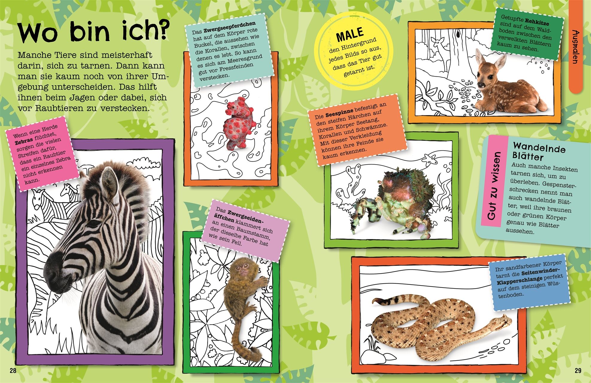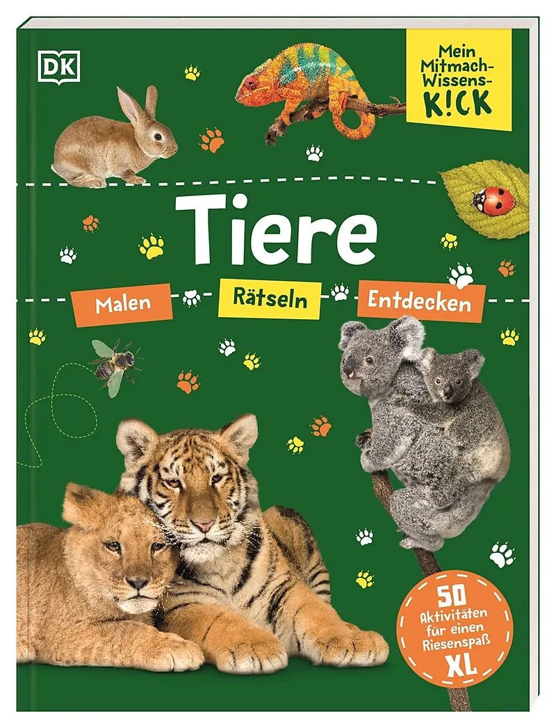 Mein Mitmach-Wissens-Kick! Ausmalen, spielen, Rätsel lösen und ganz nebenbei Spannendes über die Tierwelt erfahren! Woran erkennt man einen Menschenaffen? Und wie lange trägt die Koala-Mama ihr Junges auf dem Rücken? Mit der Mitmach-Wissens-Kick-Reihe für Kin...
