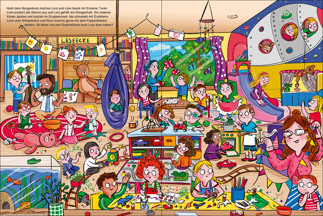 Willkommen im Kindergarten! Entdecke den aufregenden Alltag in unserer Kita hier ist immer etwa los! Die Kinder spielen im Toberaum, erkunden den Garten oder helfen in der Küche mit. Der kuschelige Ruheraum lädt zum Entspannen ein und beim Abholen sausen die ...