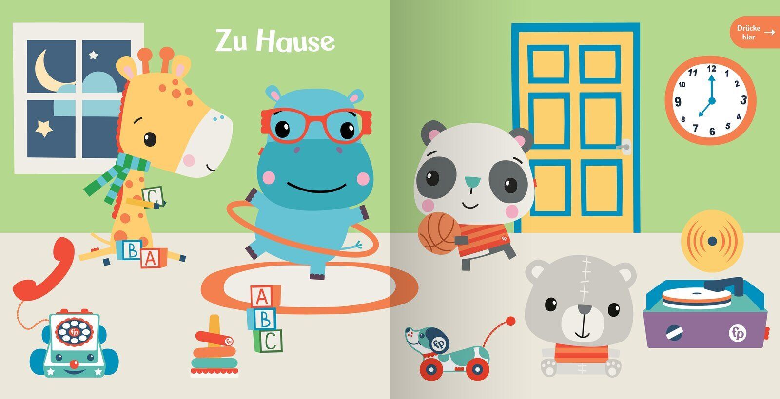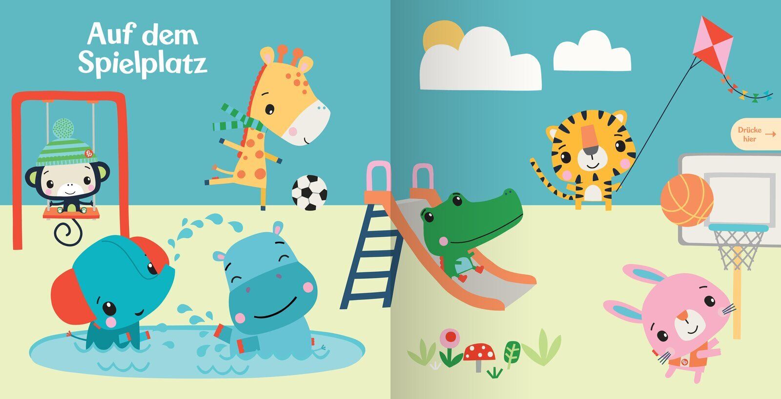 Auf jeder Seite kannst du fünf Geräusche entdecken. Findest du die Tiere auf den Bildern und hörst du, wie sie klingen oder was sie gerade tun? Ein farbenfroher Hörspaß mit vielen niedlichen Tieren! Für Kinder ab 12 Monaten. Drücke jeden Soundknopf 5-mal hinte...
