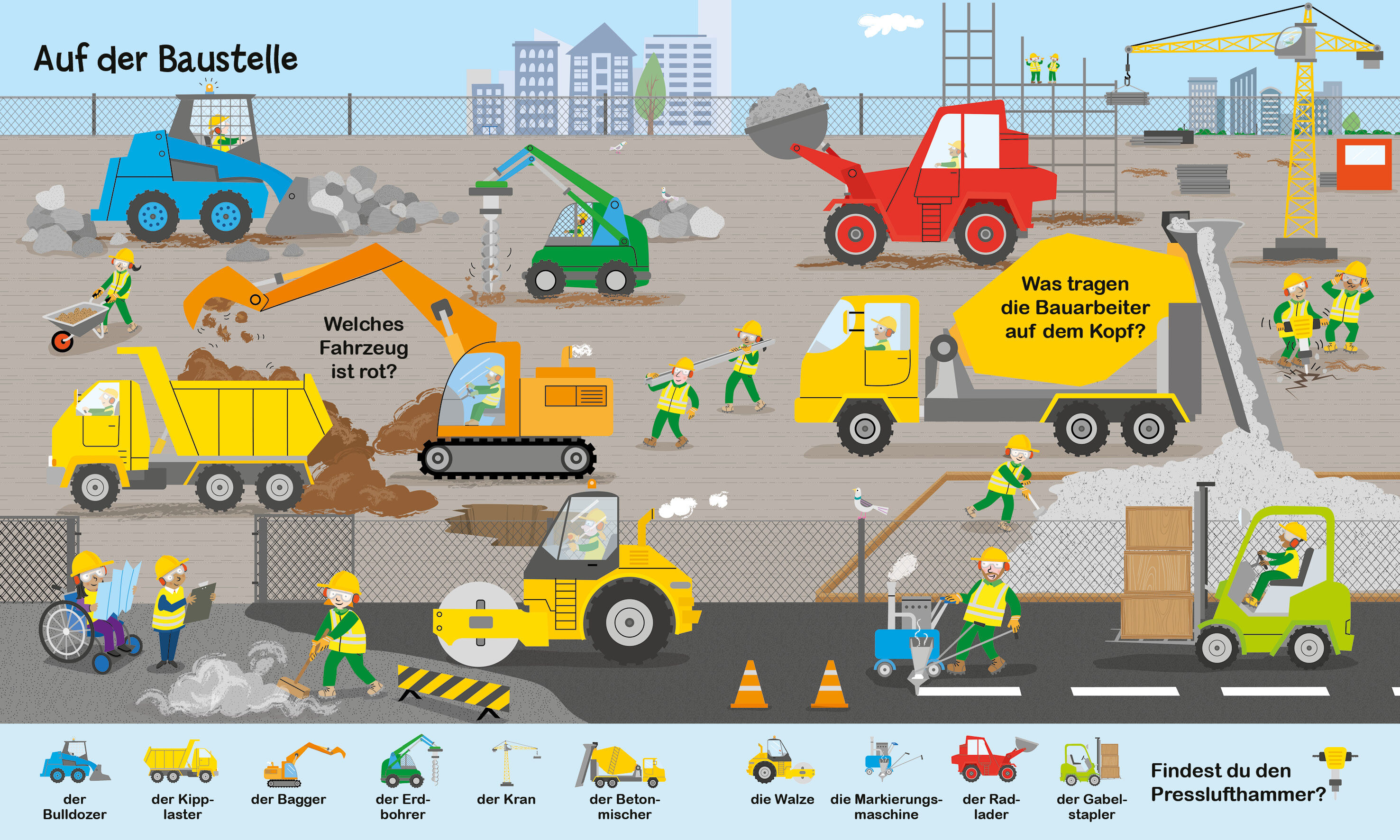 In diesem großen, bunten Wimmelbuch können Kinder im Kindergarten- und Vorschulalter Fahrzeuge aller Art entdecken. Sie lernen Fahrzeuge auf dem Bauernhof, auf der Straße oder am Meer kennen und begegnen vielen Menschen und Dingen rund um das Thema Verkehr. D...