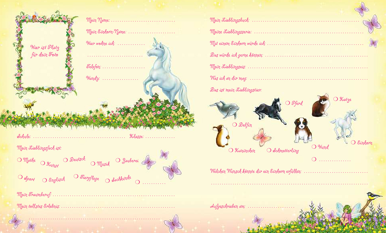 mit Glitzerlack und Spotlack Freundebuch für Grundschulkinder Über dieses Freundebuch freuen sich alle Einhorn-Fans. Auf vielen verschiedenen Seiten können sich Freundinnen aus der Schule eintragen. Außerdem gibt es einen Geburtstagskalender und jede Menge Pla...