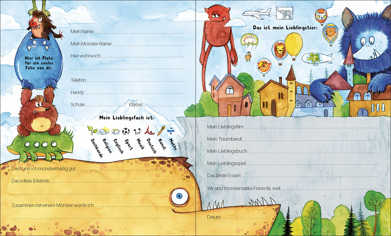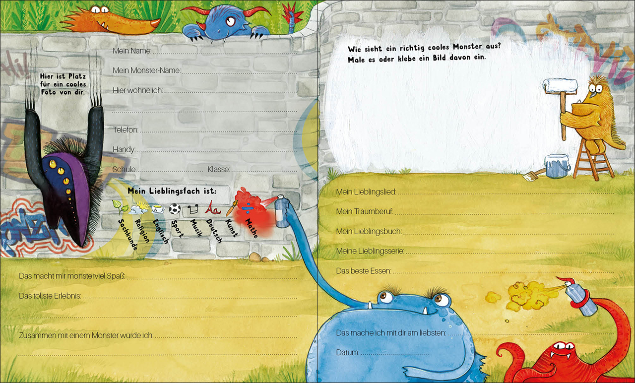 Freundebuch für Schulkinder Über dieses Freundebuch freuen sich alle Monster-Fans, denn die Klapp-Wechselcover sind ein echter Hingucker. Auf vielen verschiedenen Seiten können sich Freundinnen aus der Schule eintragen. Außerdem gibt es einen Geburtstagskalen...