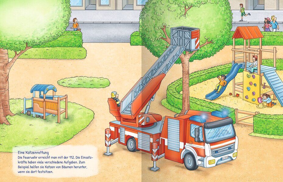 Kinder können die Löschfahrzeuge bei der Feuerwehr, Polizeiwagen, die Einsatzleitstelle der Polizei, eine Katzenrettung und vieles mehr in diesem bunten Stickerbuch kennen lernen. Mit über 280 Stickern können Kinder ab 4 Jahren die spannenden Szenen vervollstä...
